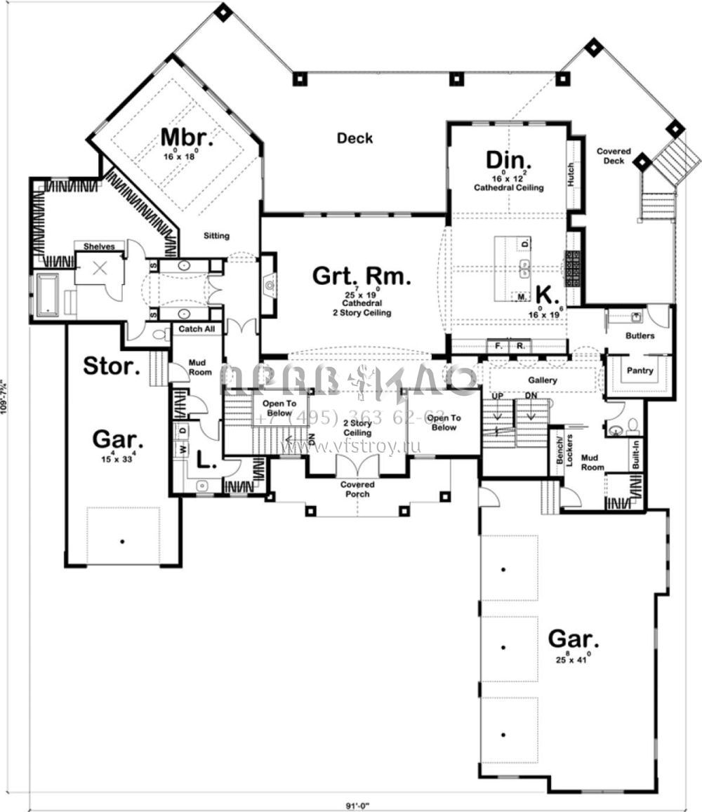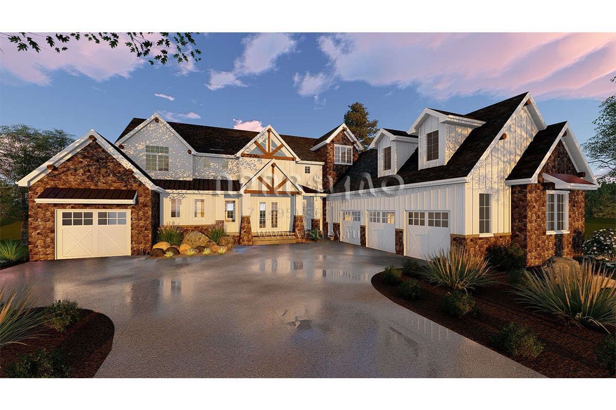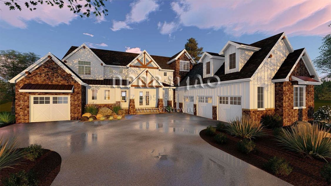 Проект двухэтажного дома с гаражом на три и более машин в американском стиле S5-440 (963-00317)