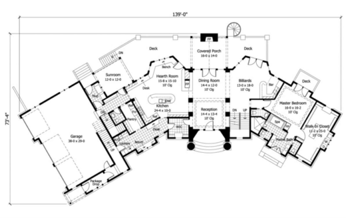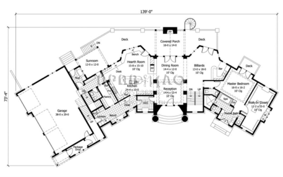 S5-441 (098-00061) Это иностранный проект, для которого требуется адаптация под нормы, действующие в Российской Федерации. Вы видите проект дома в стиле Ранчо. В этом доме сочетаются черты сельской постройки и аскетичность лофта. Внутри жильцы смогут проводить время с максимальным комфортом. Обратим внимание, что сейчас на планировках все размеры представлены в футах. Для перевода в метры вам необходимо значение в футах умножить на 0,3048.
