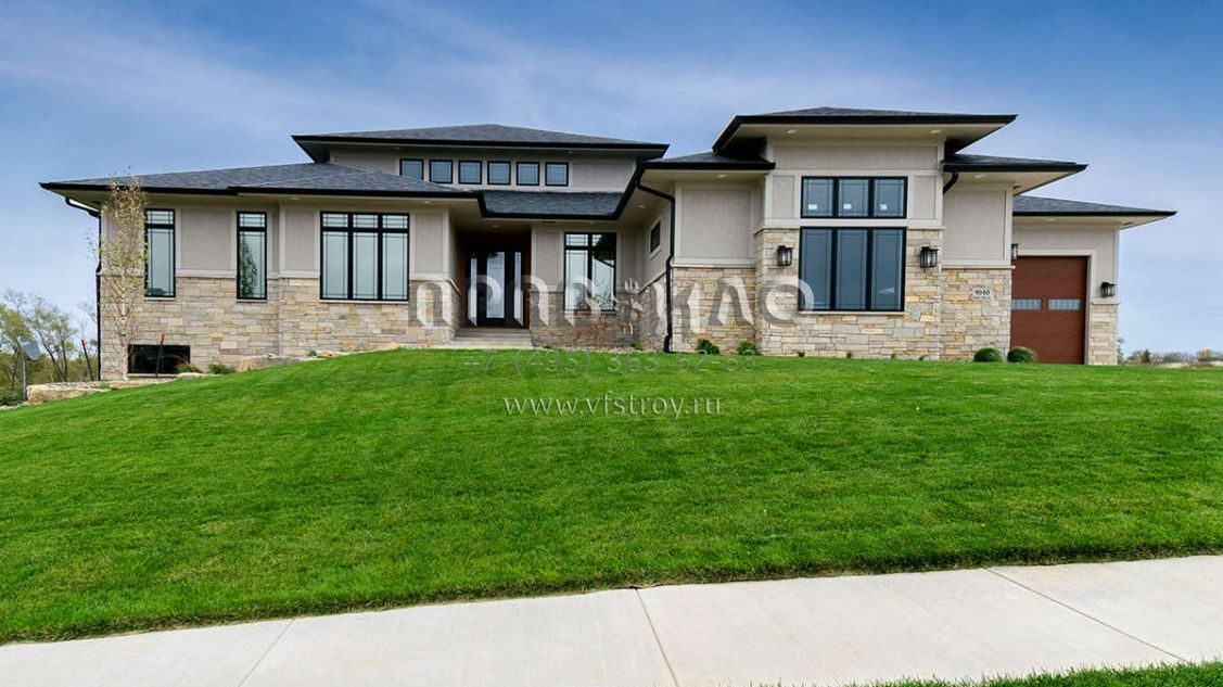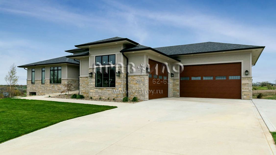 Проект одноэтажного дома с гаражом на три и более машин в стиле Райт S5-441 (1020-00351)
