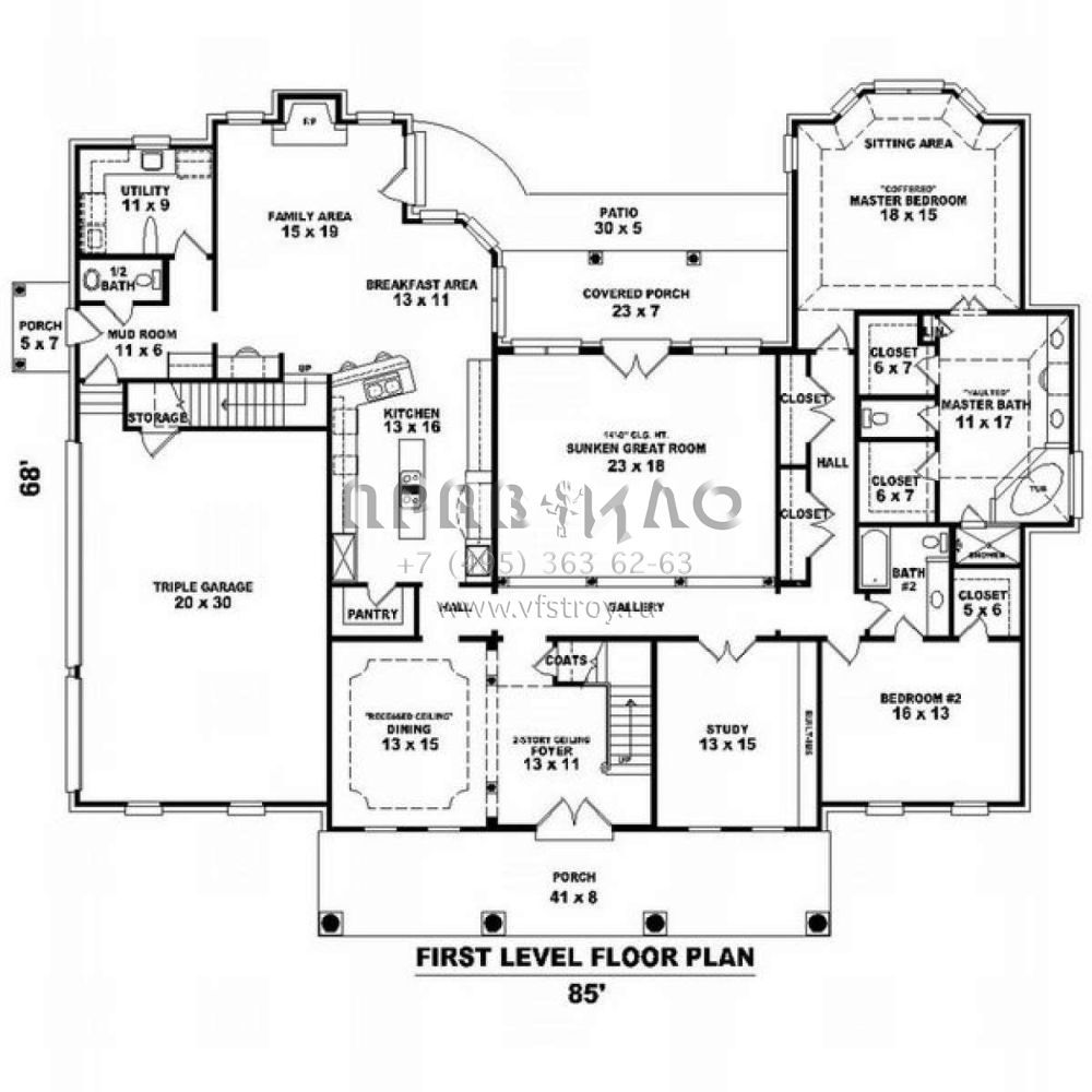 Проект двухэтажного дома с гаражом на три и более машин в современном стиле S5-442 (053-02204)