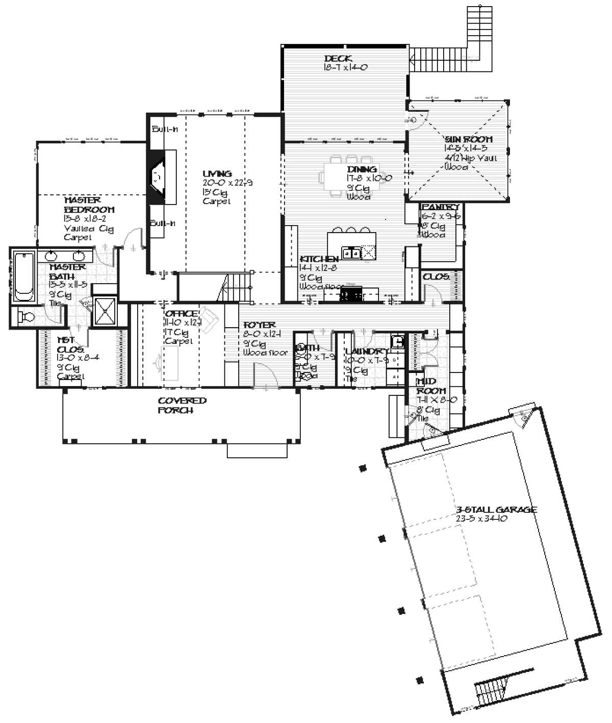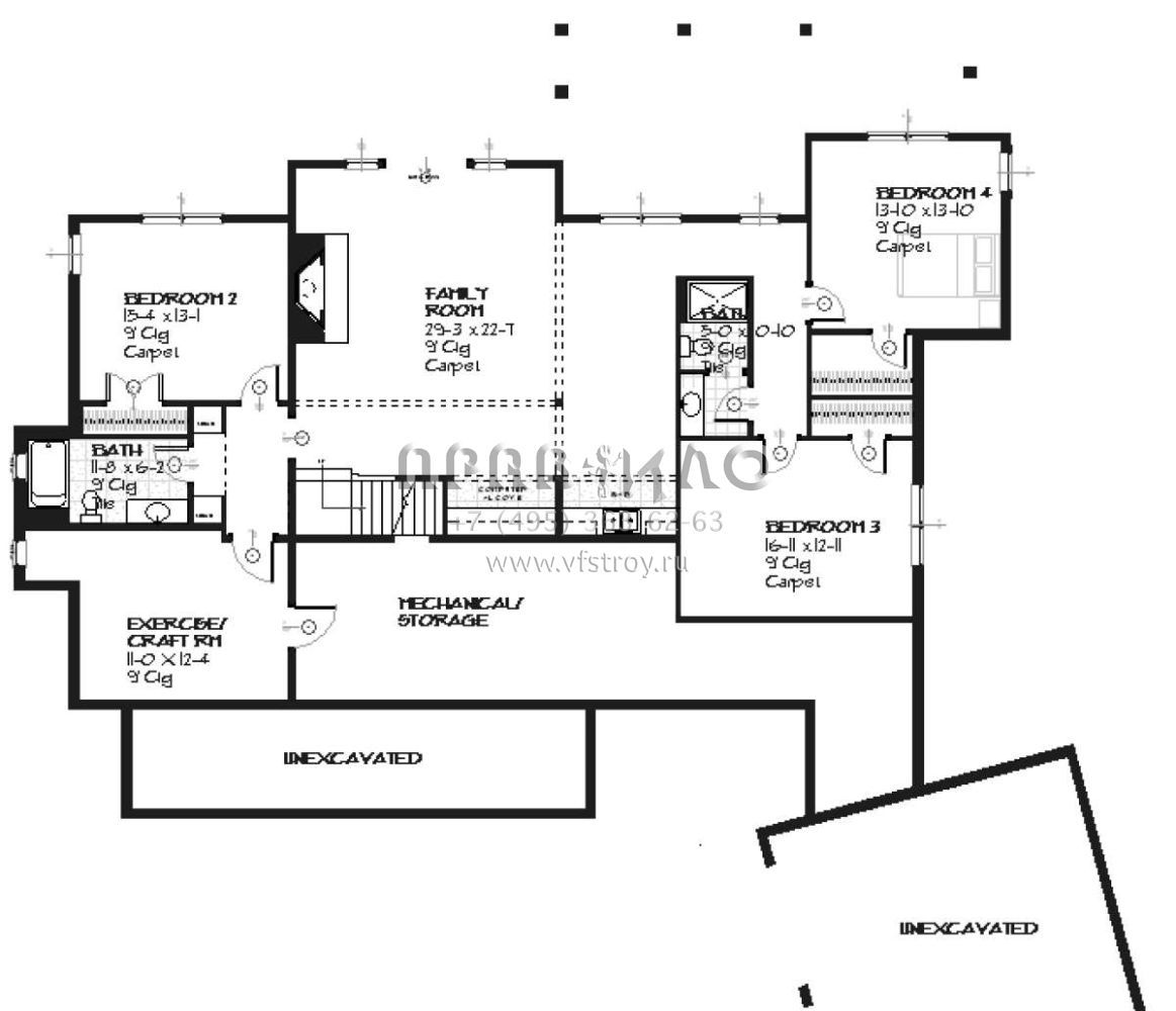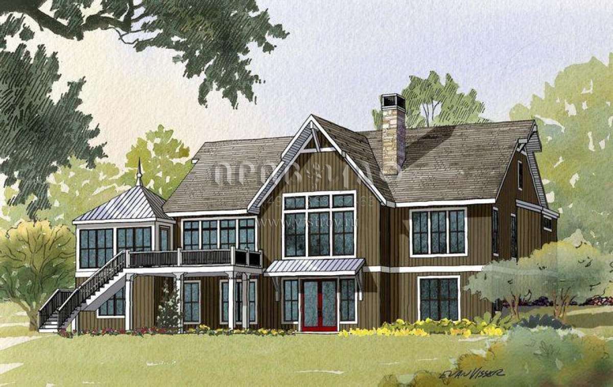 Проект двухэтажного дома с гаражом на три и более машин в стиле Ранчо S5-442 (1637-00018)