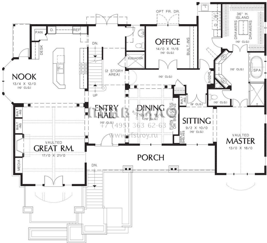 Поскольку этот проект разрабатывался иностранными архитекторами, для строительства дома требуется переработка проекта под действующие в России нормы. Данные визуализации проекта представлены для ознакомления с концепцией проекта. Проект разработан американским архитектурным бюро и представлен America's Best House Plans.