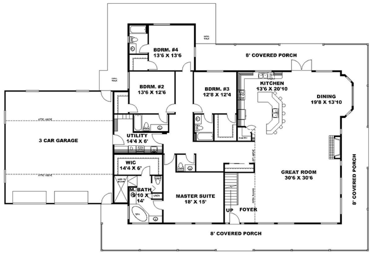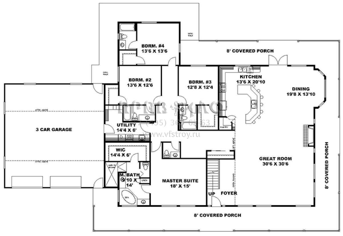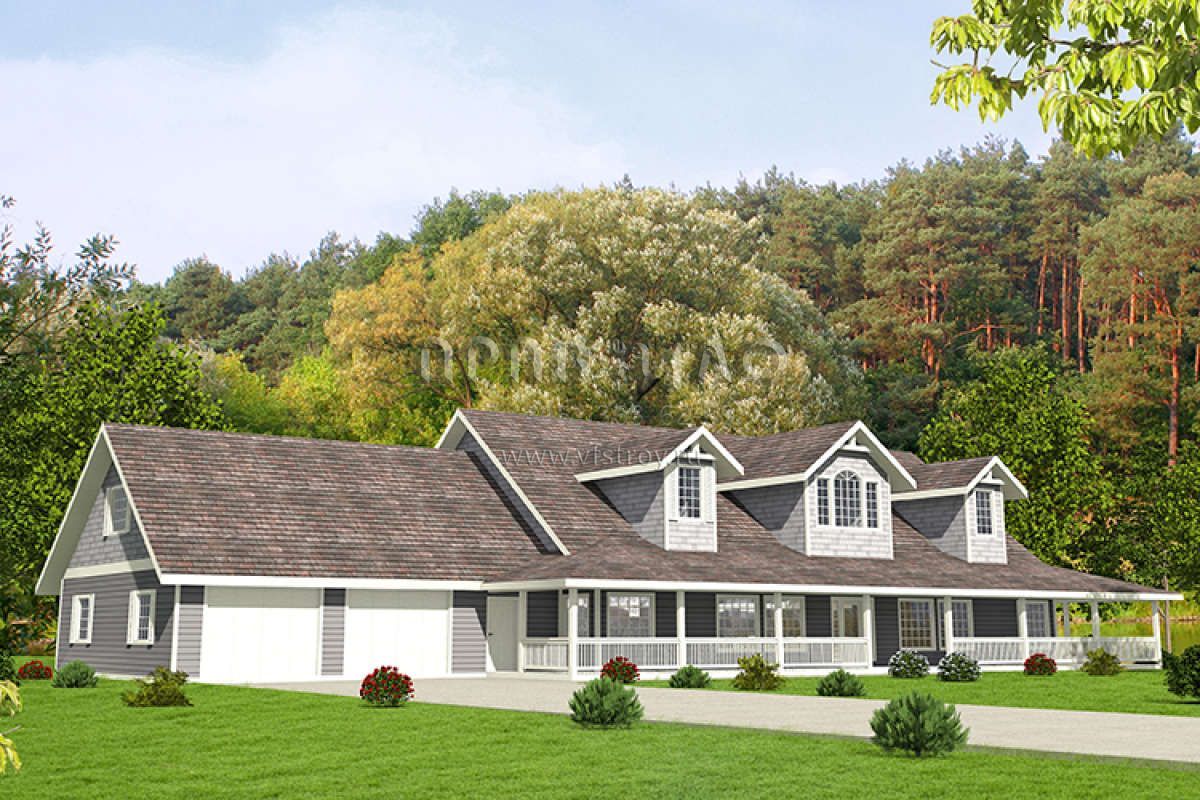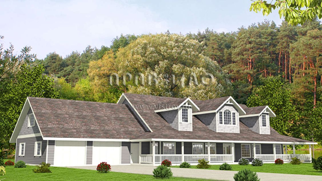 Проект двухэтажного дома с гаражом на три и более машин в стиле Ранчо S5-443 (039-00692)