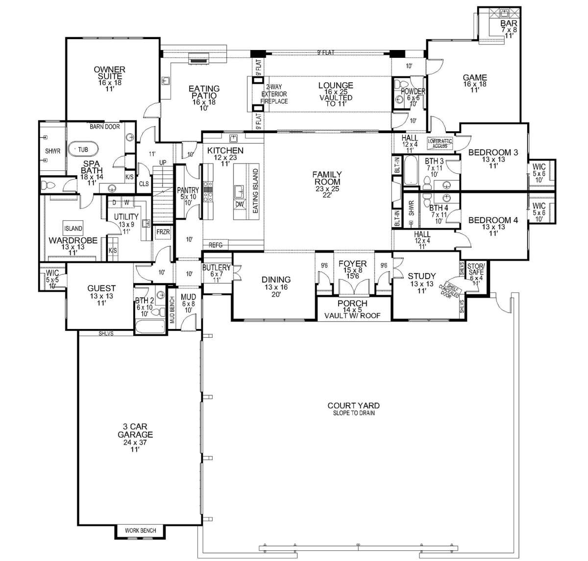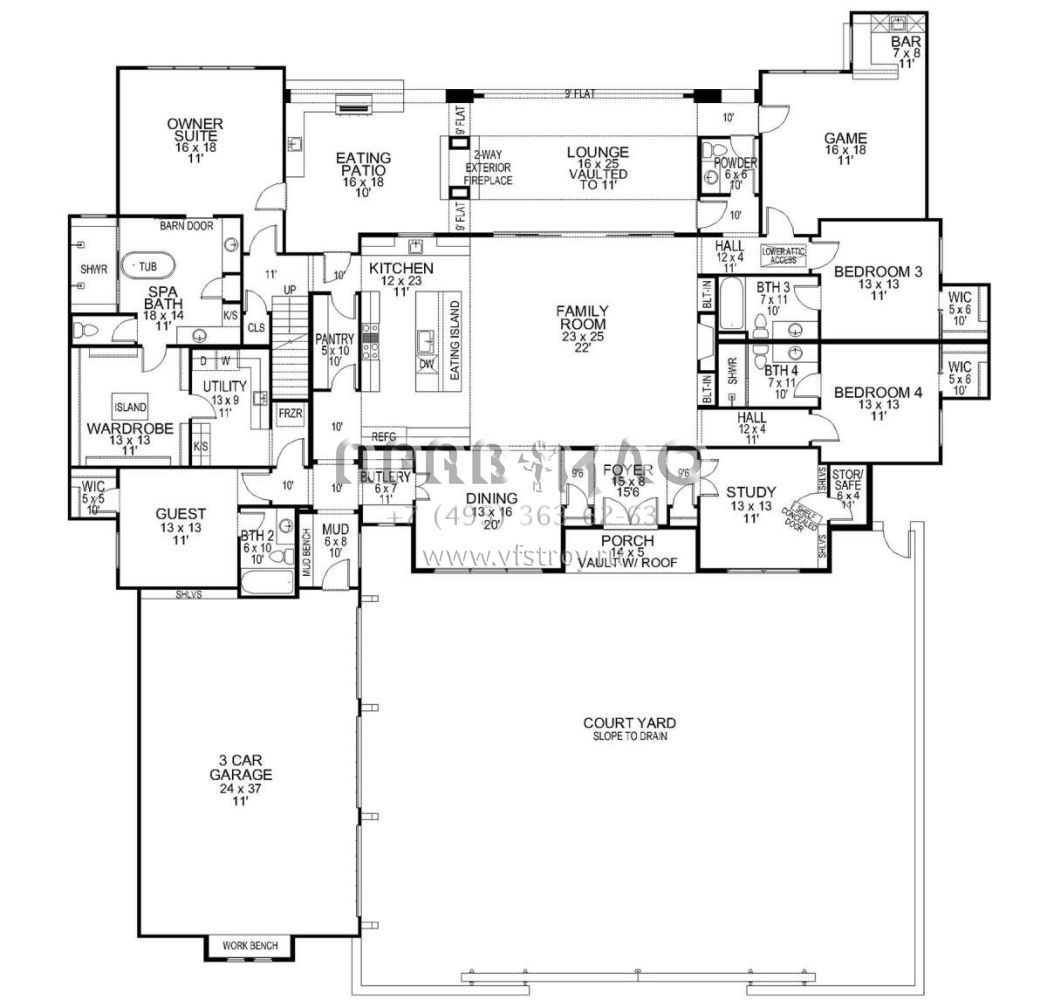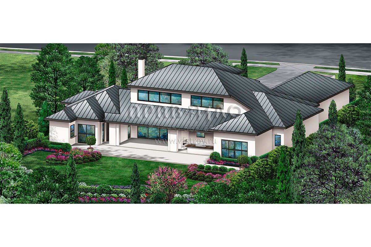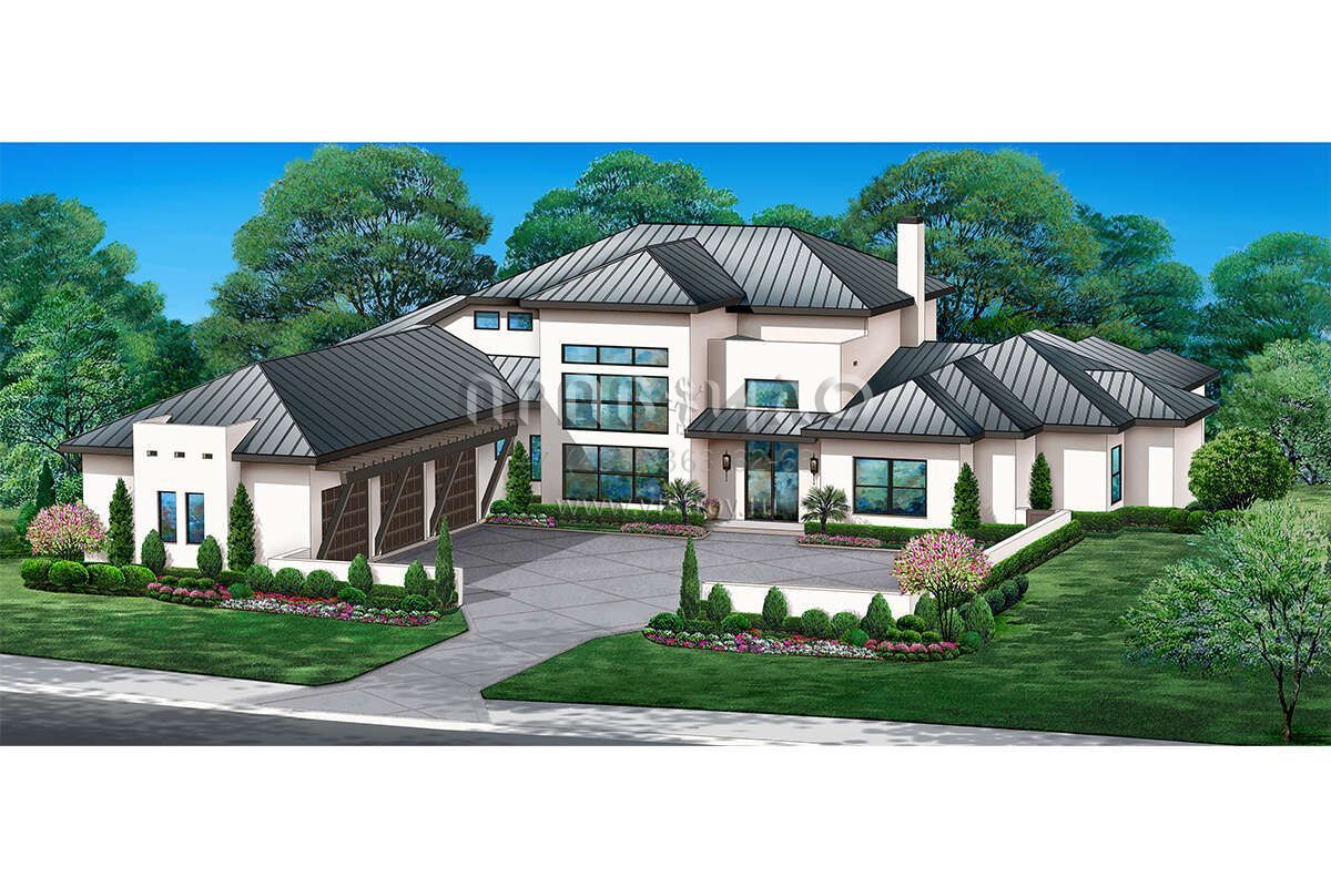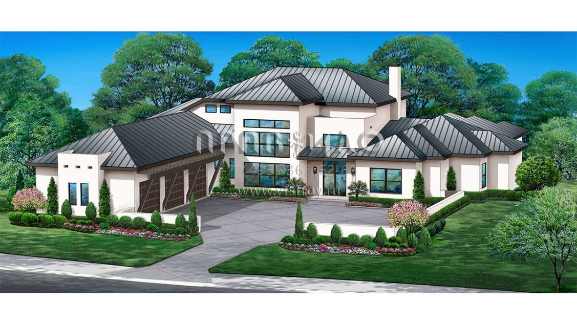 Проект одноэтажного дома с гаражом на три и более машин в современном стиле S5-443 (5445-00512)