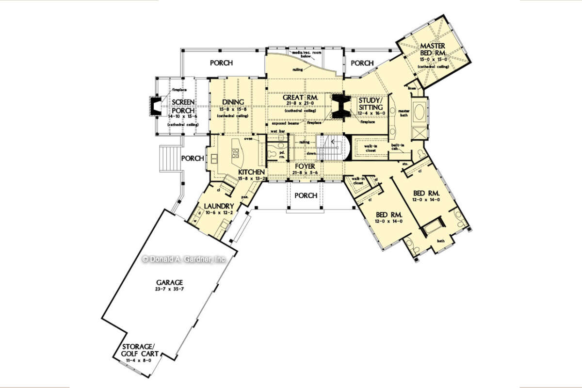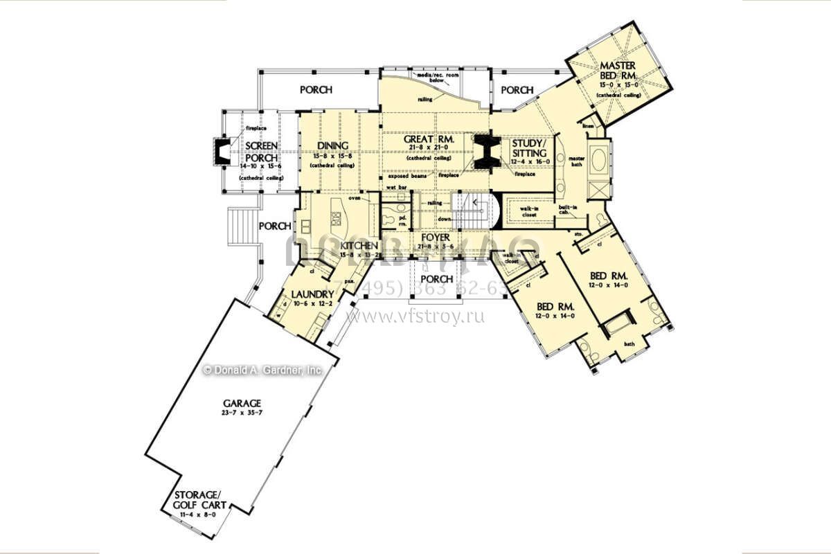 Проект одноэтажного дома с гаражом на три и более машин в американском стиле S5-444 (2865-00378)