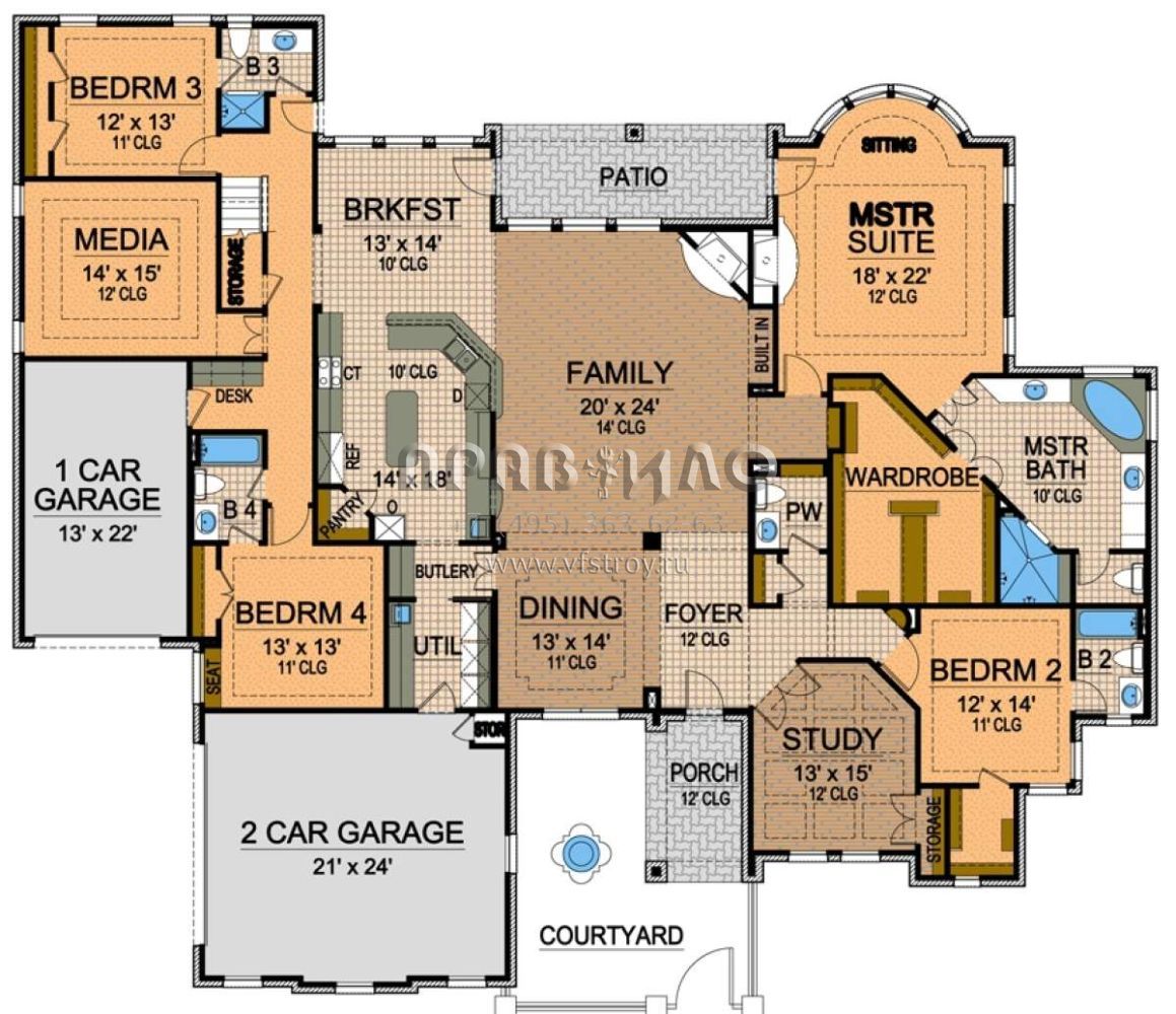 Поскольку этот проект разрабатывался иностранными архитекторами, для строительства дома требуется переработка проекта под действующие в России нормы. Данные визуализации проекта представлены для ознакомления с концепцией проекта. Проект разработан американским архитектурным бюро и представлен America's Best House Plans.