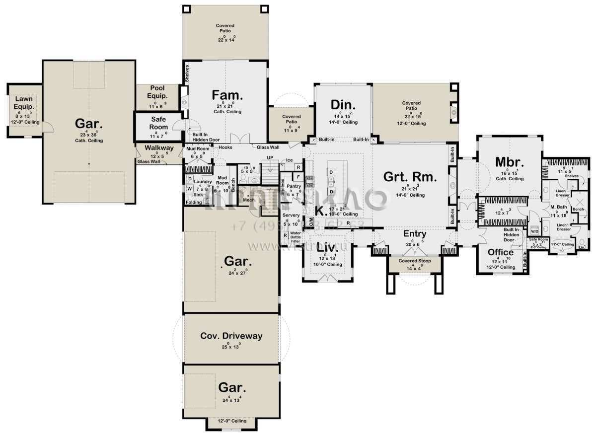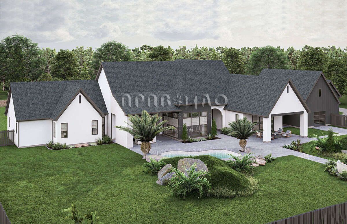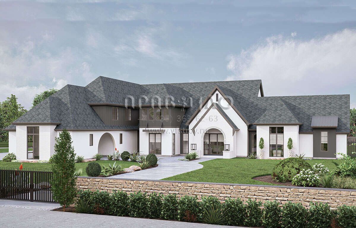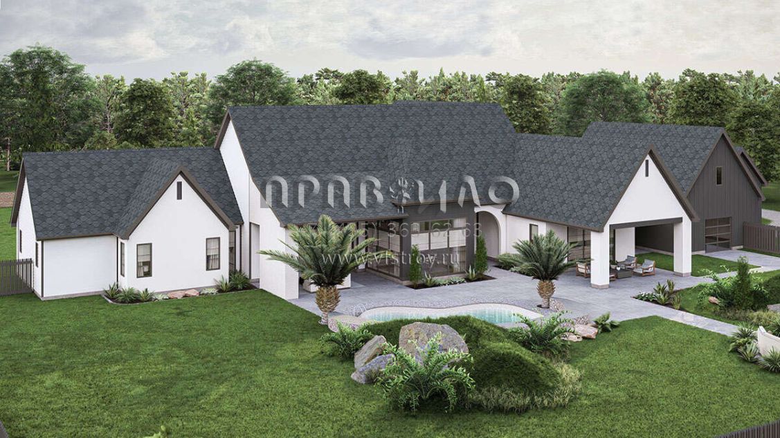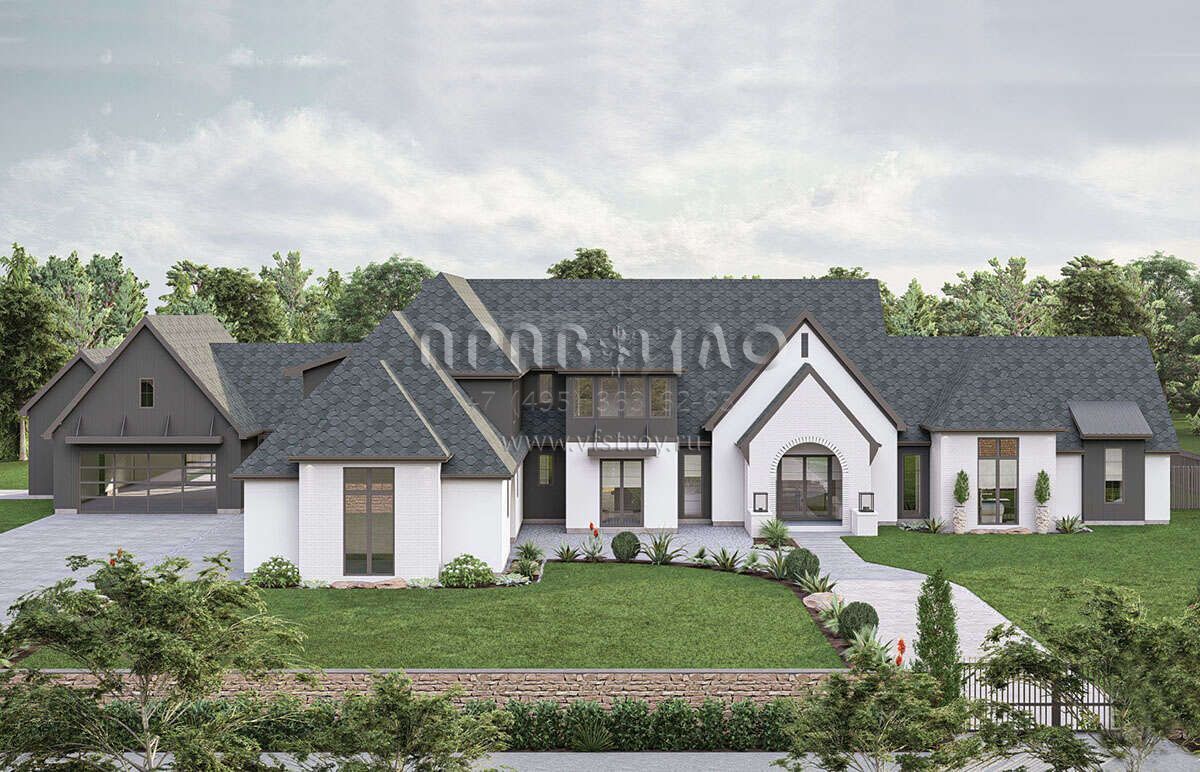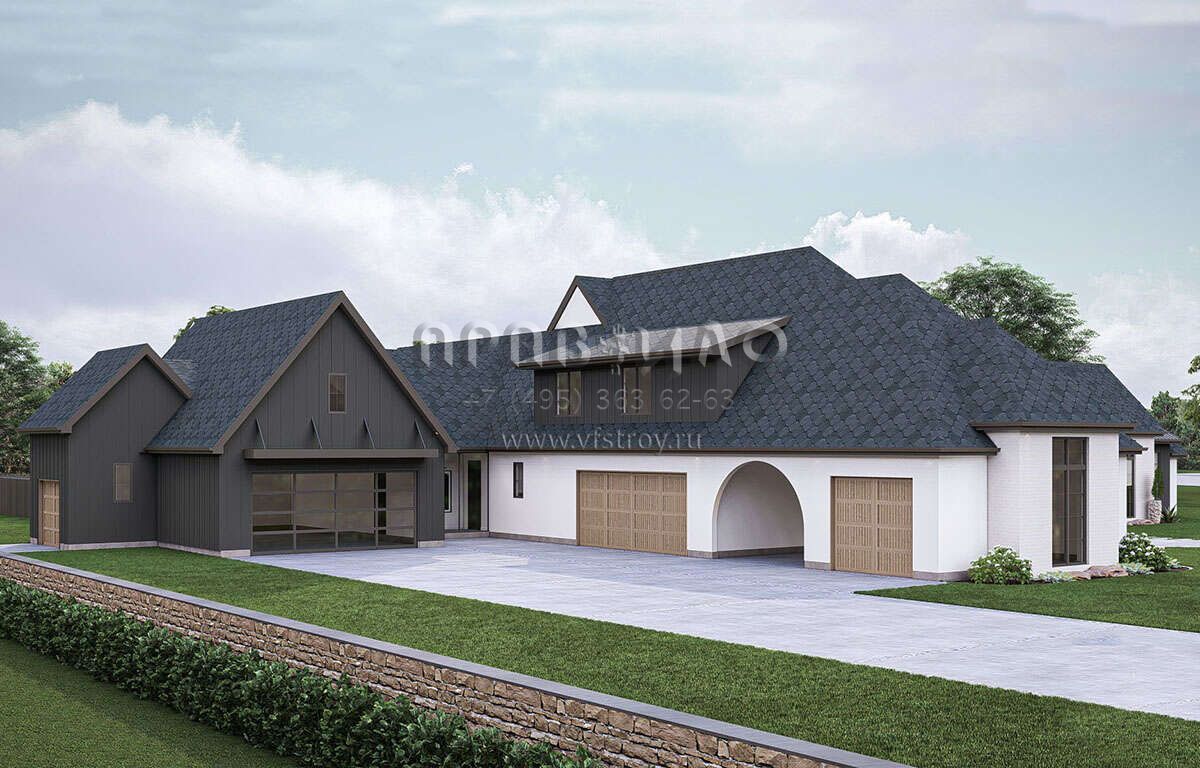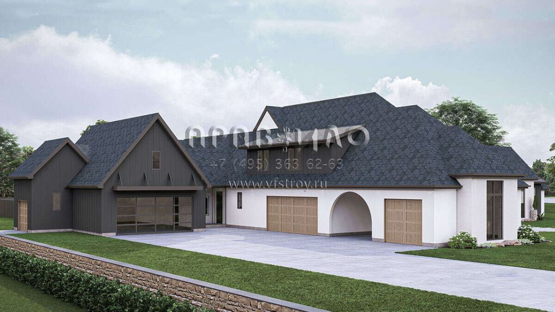 Проект двухэтажного дома с гаражом на три и более машин в современном стиле S5-444 (963-00883)