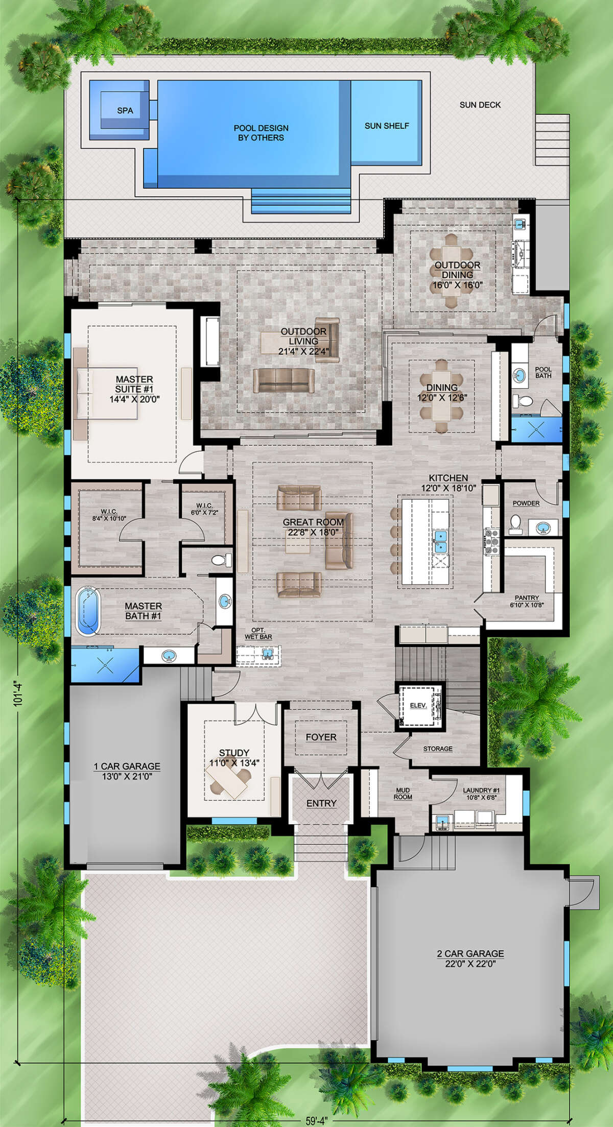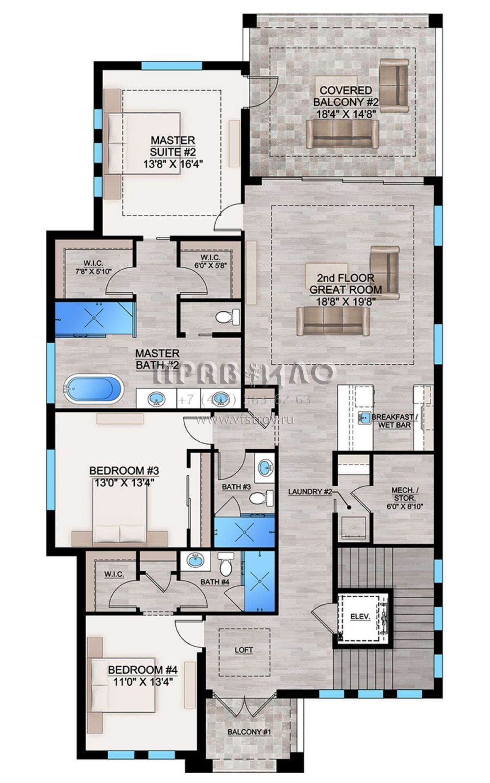 Проект двухэтажного дома с гаражом на три и более машин в современном стиле S5-445 (207-00137)