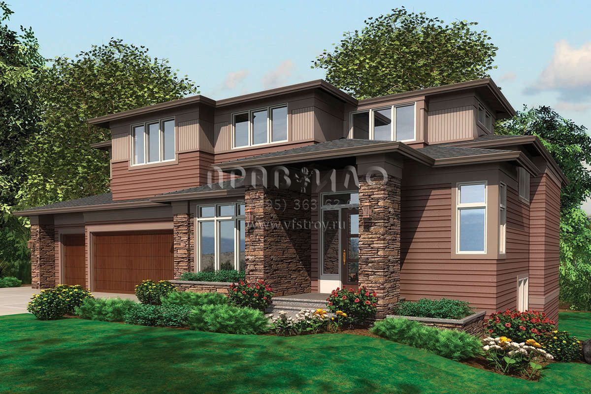 Проект двухэтажного дома с гаражом на три и более машин в современном стиле S5-445 (2559-00607)