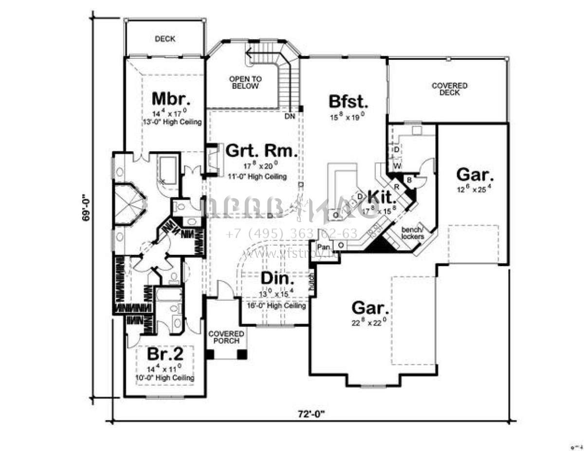 Поскольку этот проект разрабатывался иностранными архитекторами, для строительства дома требуется переработка проекта под действующие в России нормы. Данные визуализации проекта представлены для ознакомления с концепцией проекта. Проект разработан американским архитектурным бюро и представлен America's Best House Plans.