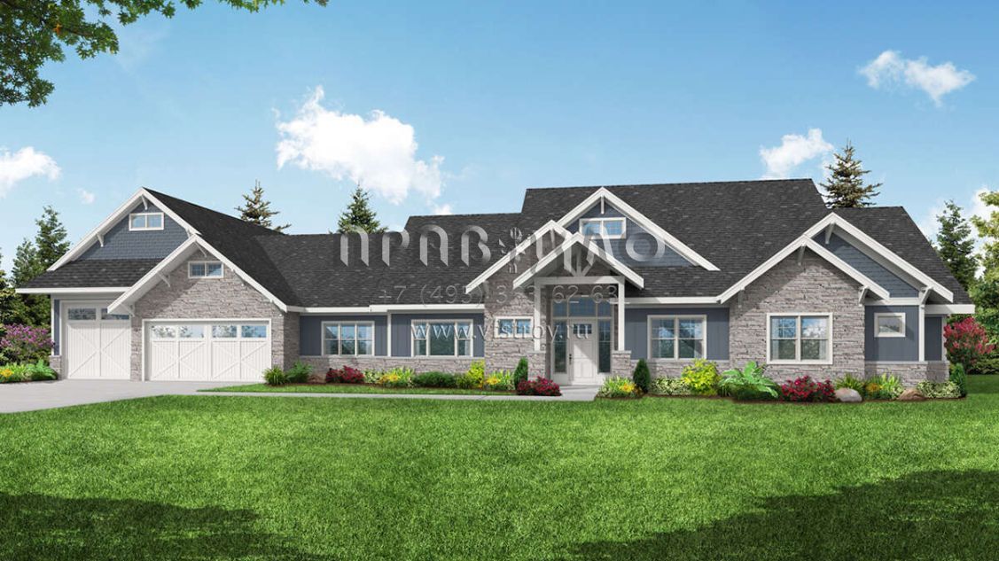 Проект двухэтажного дома с гаражом на три и более машин в американском стиле S5-447 (035-01036)