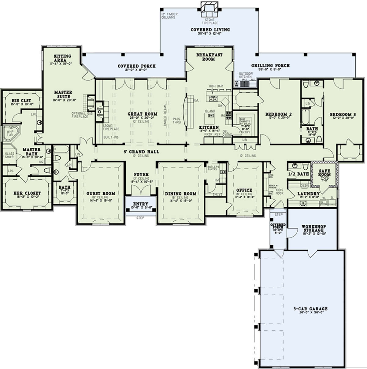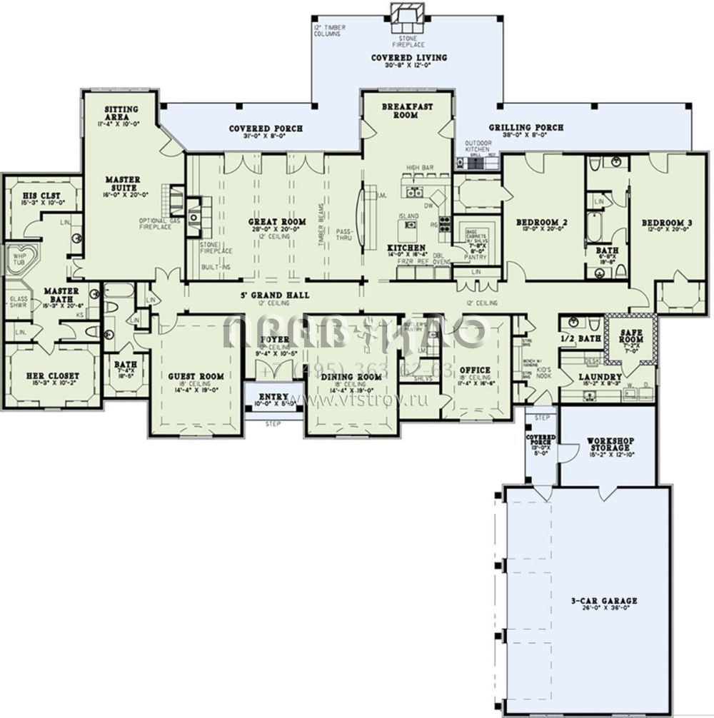 Проект одноэтажного дома с гаражом на три и более машин в стиле Ранчо S5-447 (110-00836)
