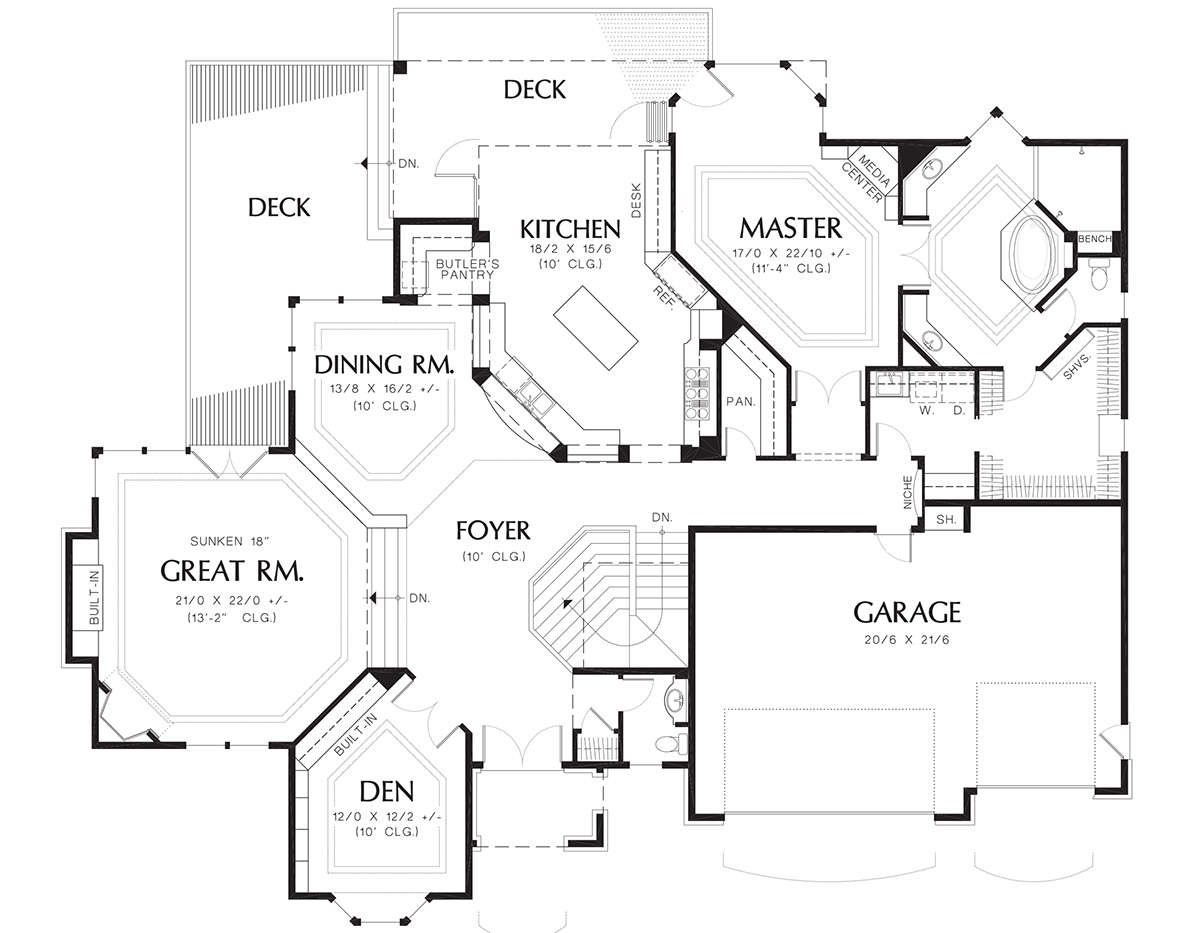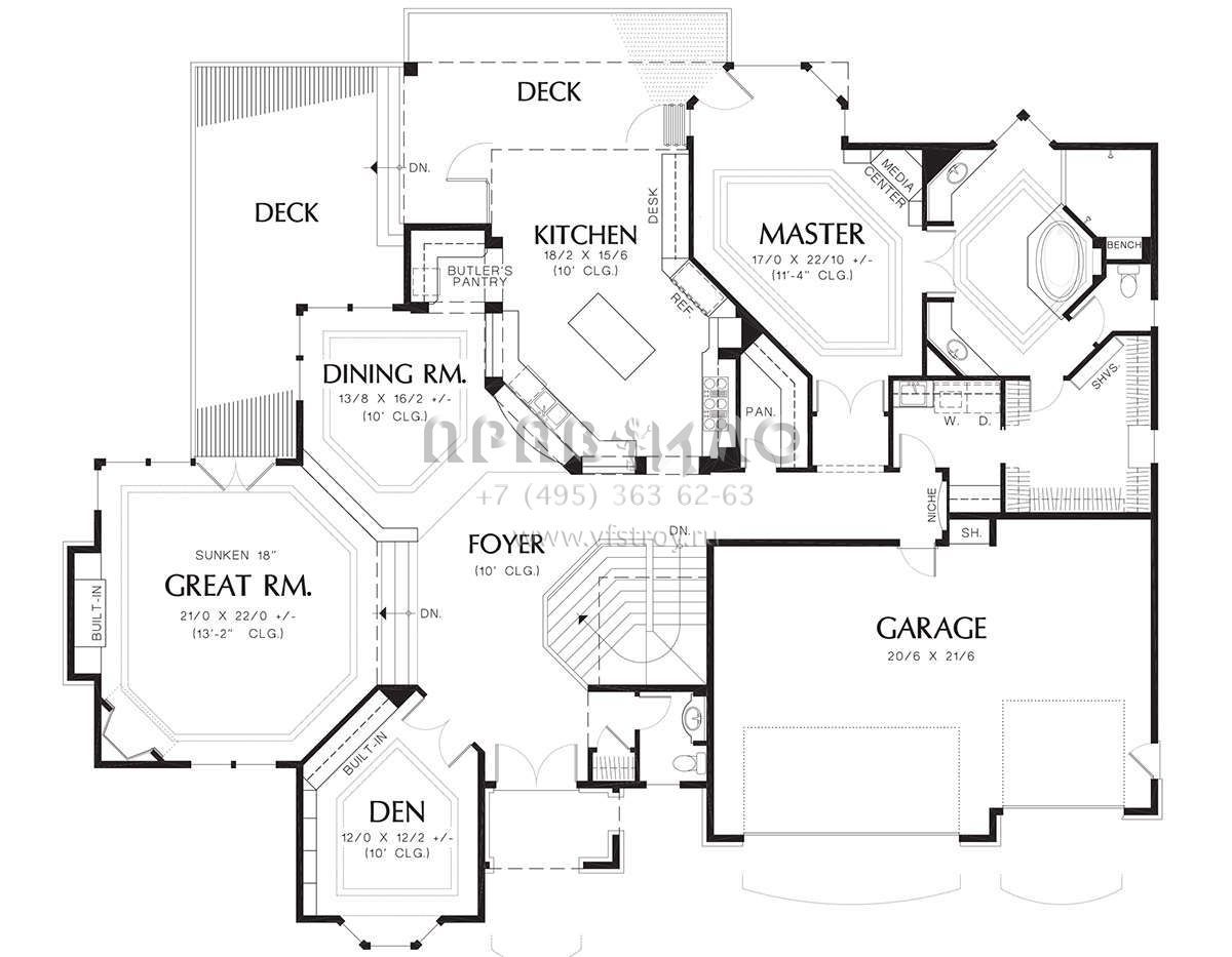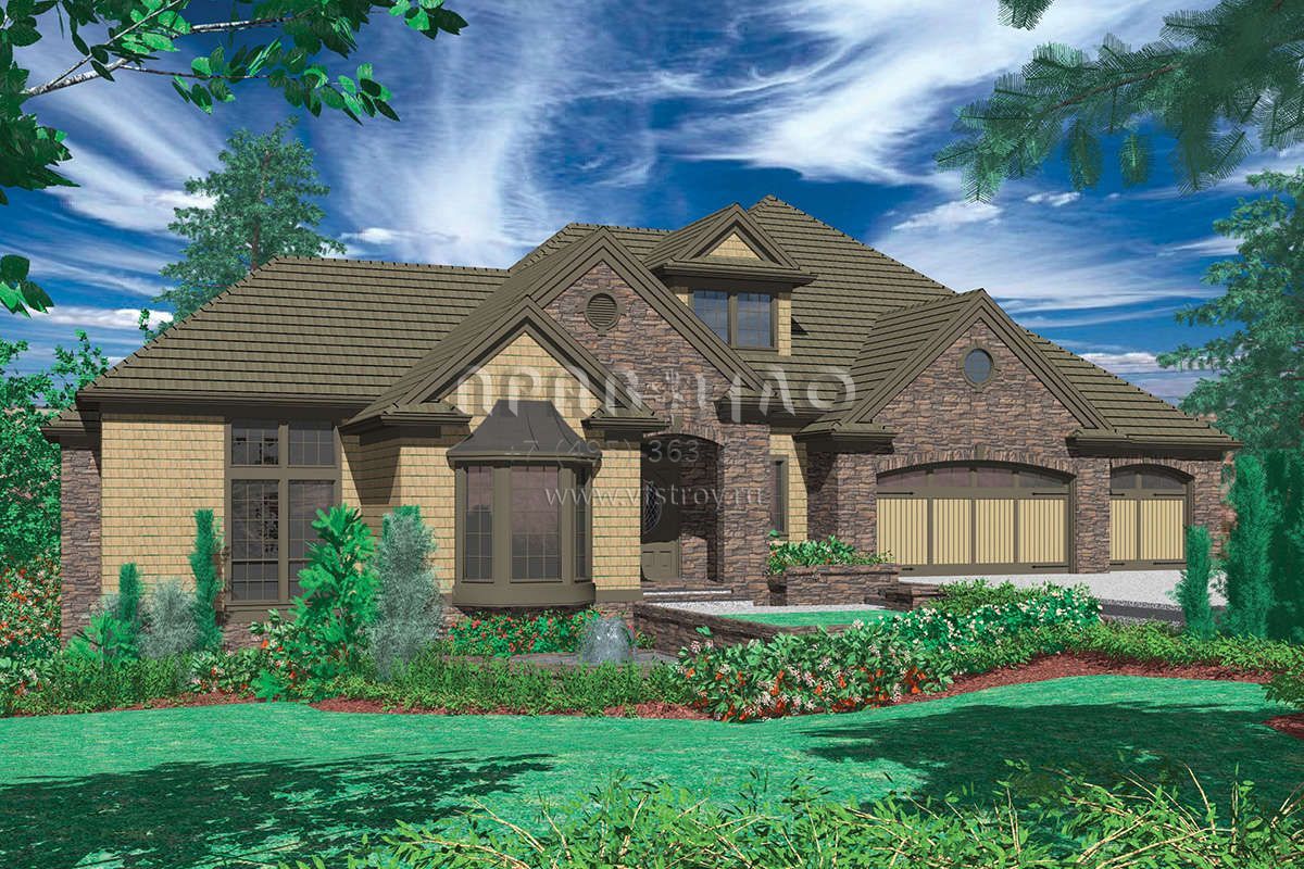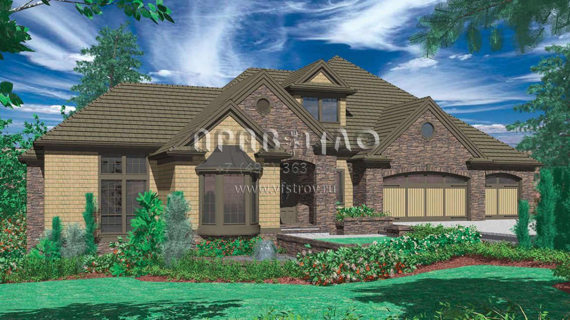 Проект одноэтажного дома с гаражом на три и более машин в стиле Ранчо S5-447 (2559-00177)