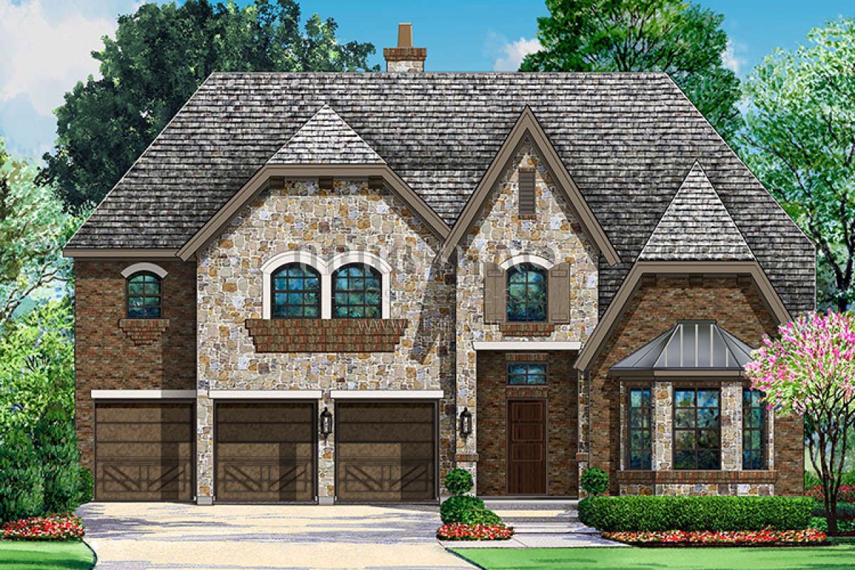 Проект двухэтажного дома с гаражом на три и более машин в английском стиле S5-448 (5445-00262)