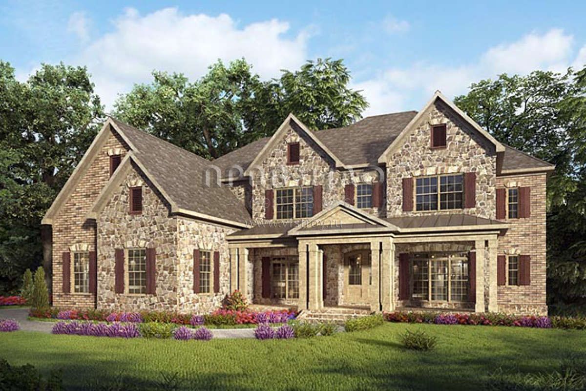 Проект двухэтажного дома с гаражом на три и более машин в английском стиле S5-448 (6082-00038)