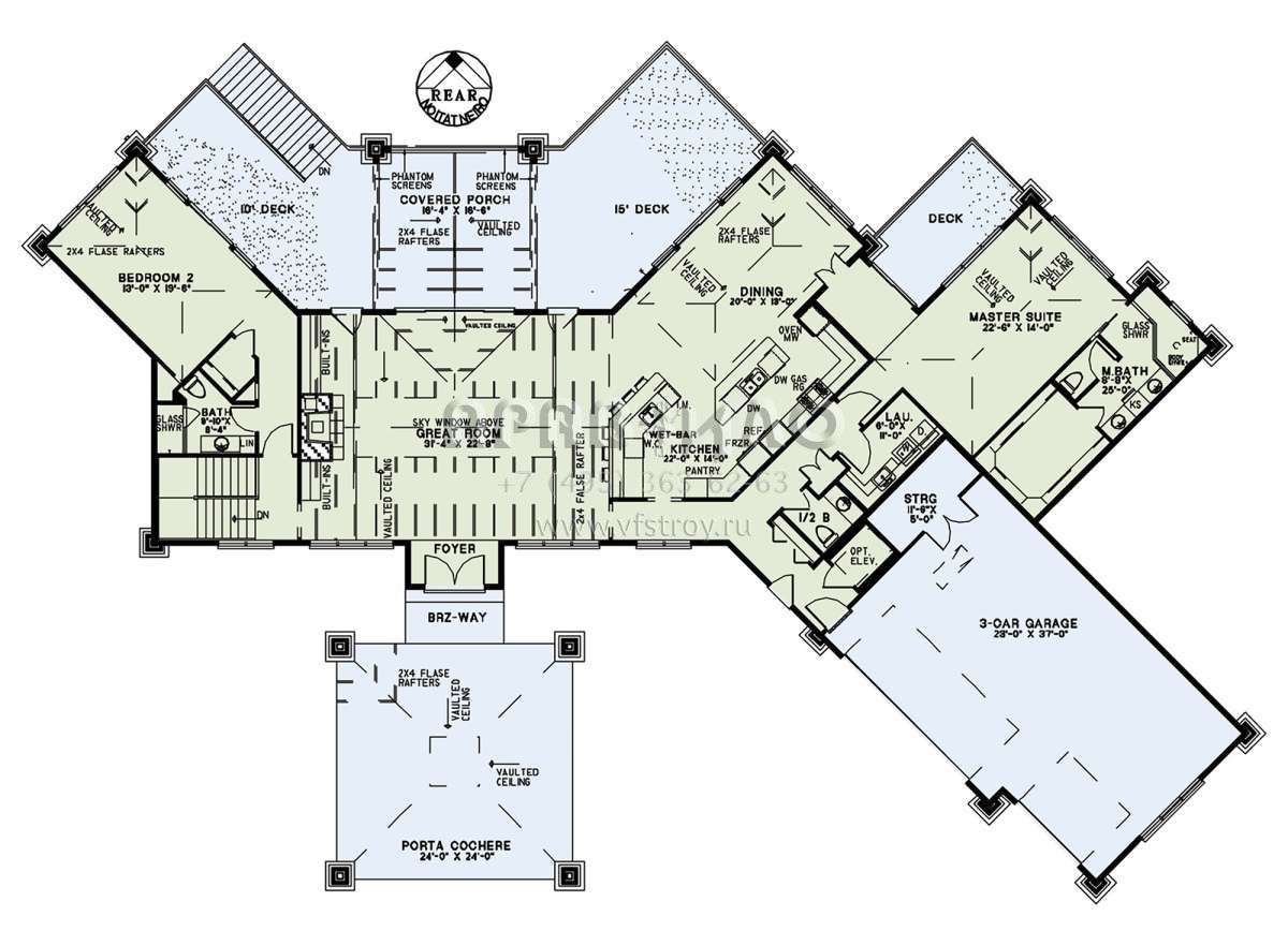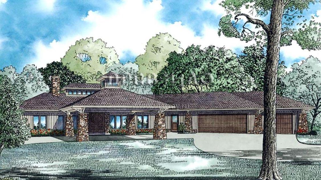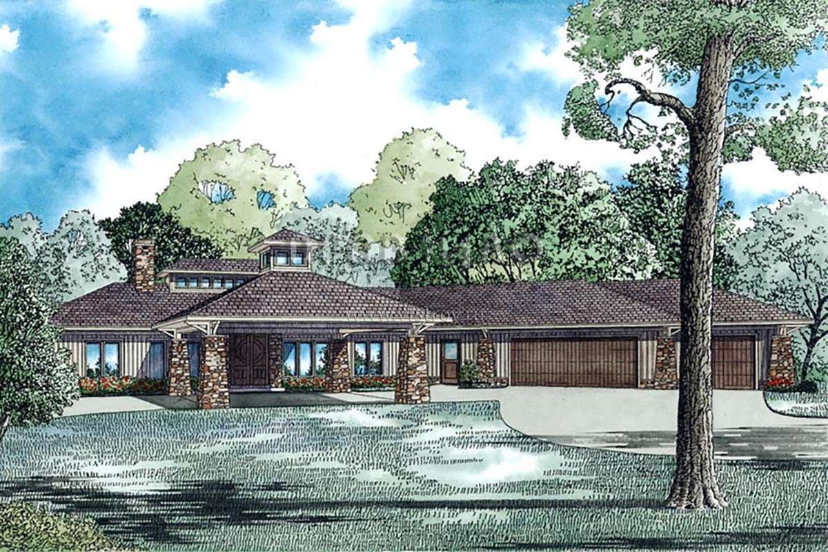 Проект двухэтажного дома с гаражом на три и более машин в стиле Райт S5-449 (110-01064)