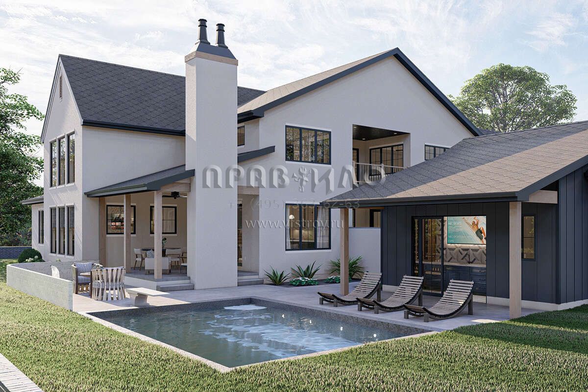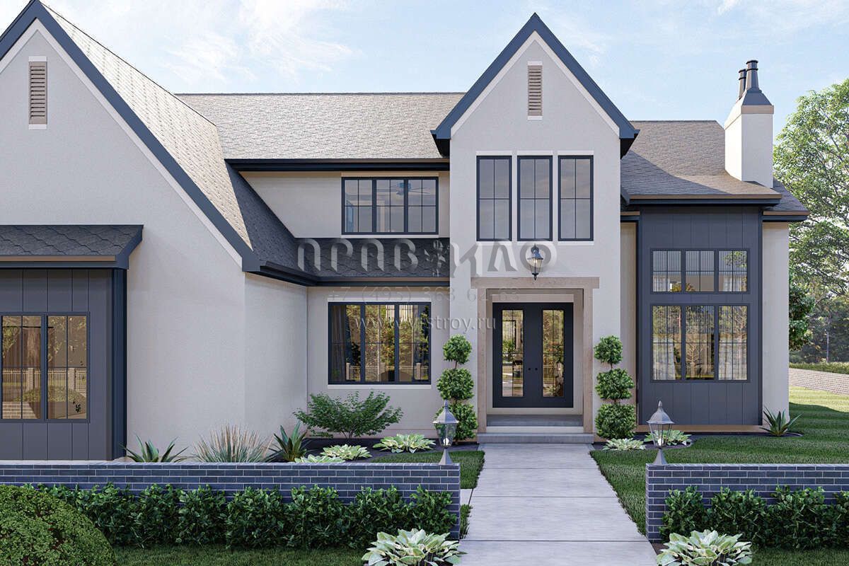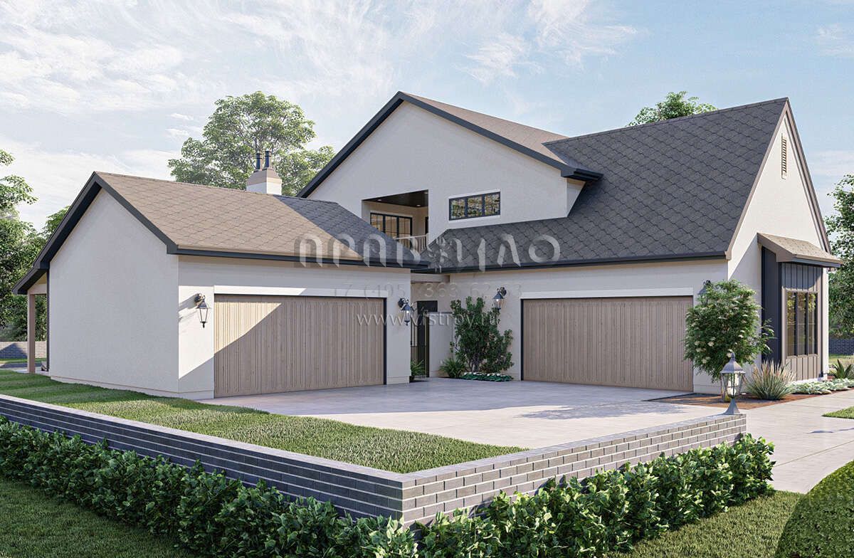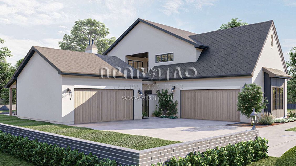 Проект двухэтажного дома с гаражом на три и более машин в стиле Ранчо S5-452 (963-00642)