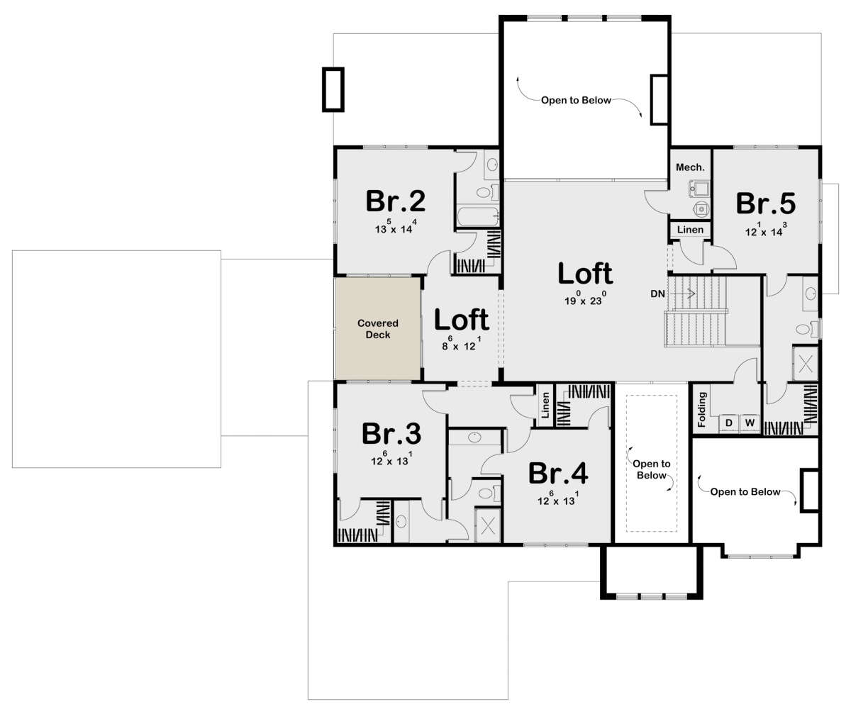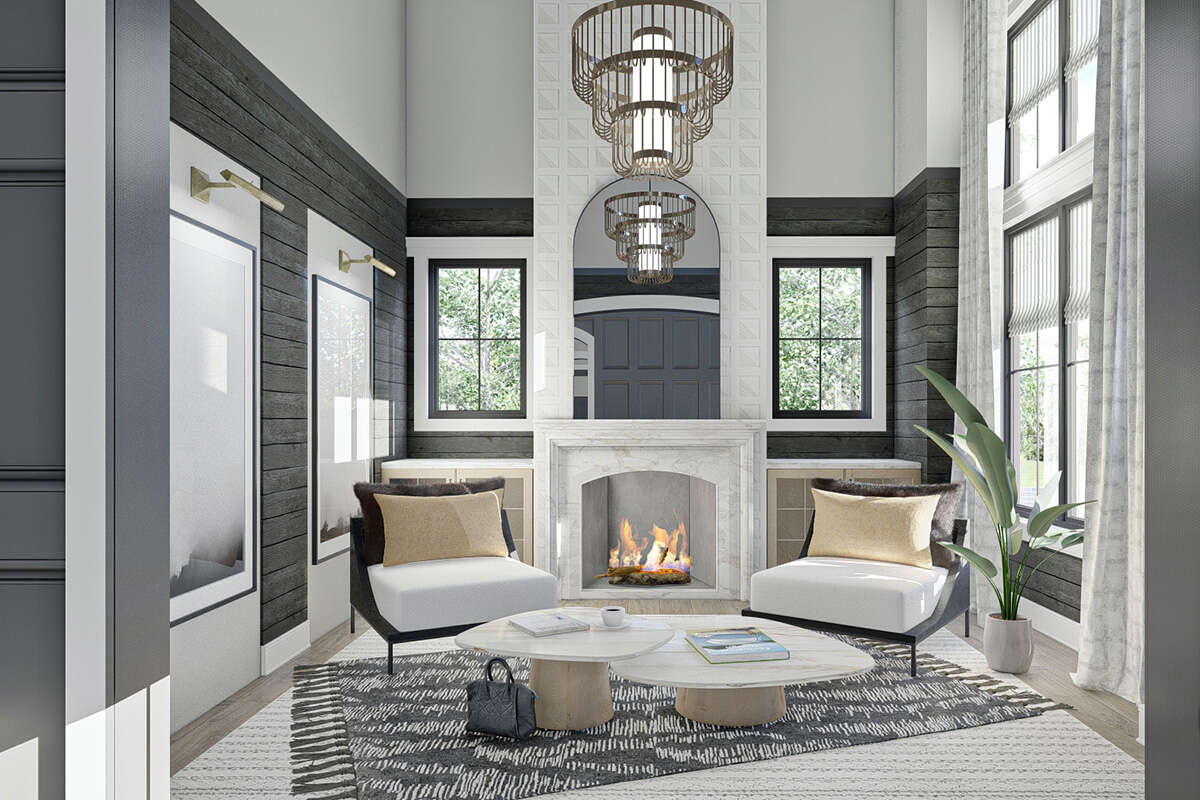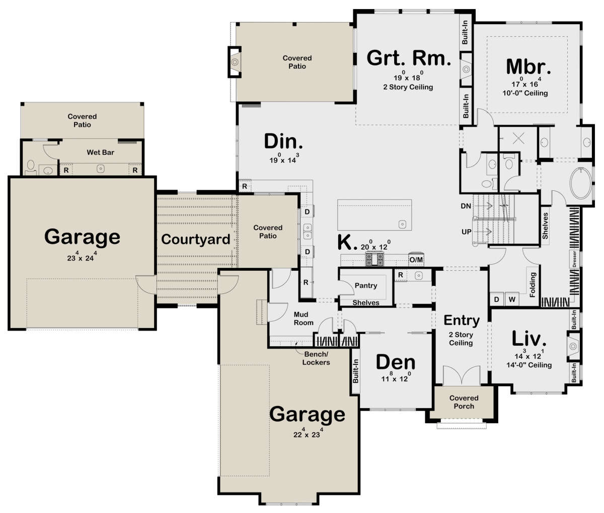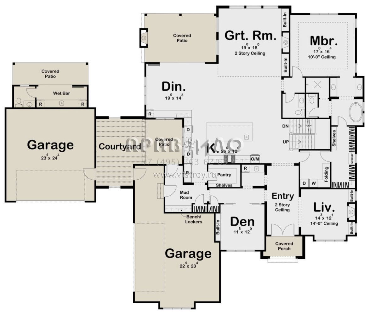 Проект двухэтажного дома с гаражом на три и более машин в стиле Ранчо S5-452 (963-00642)