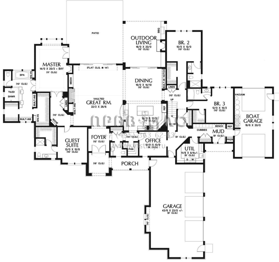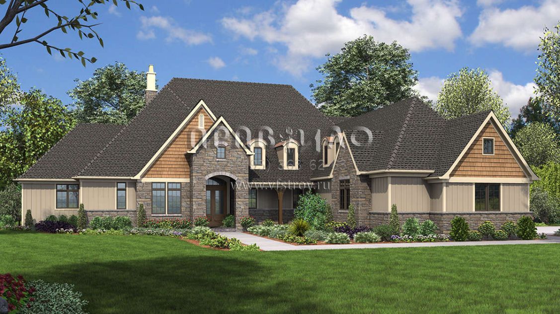 Проект двухэтажного дома с гаражом на три и более машин в американском стиле S5-454 (2559-00794)