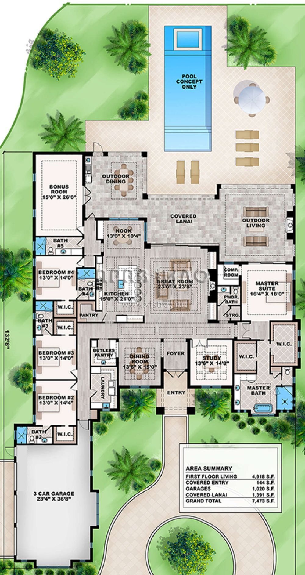 Проект одноэтажного дома с гаражом на три и более машин в современном стиле S5-457 (207-00035)
