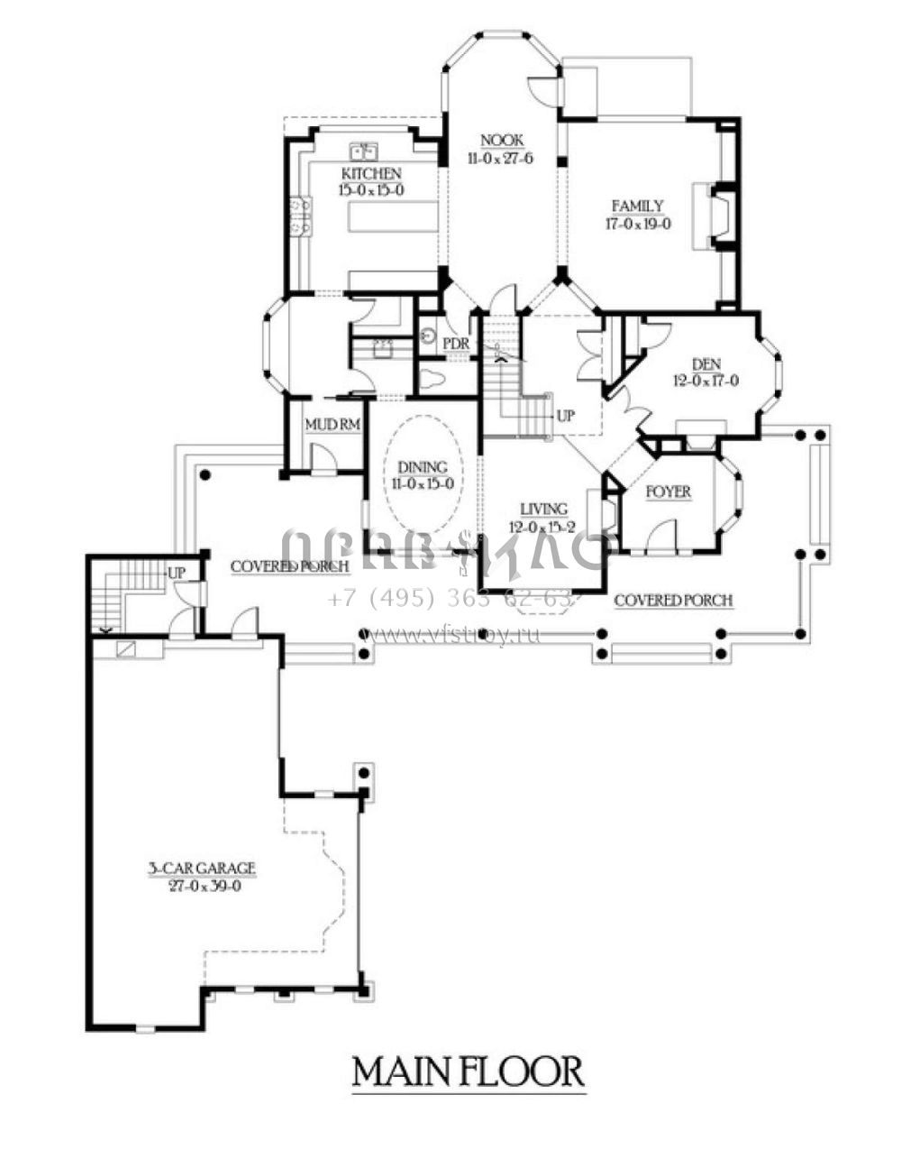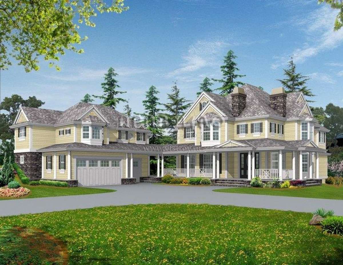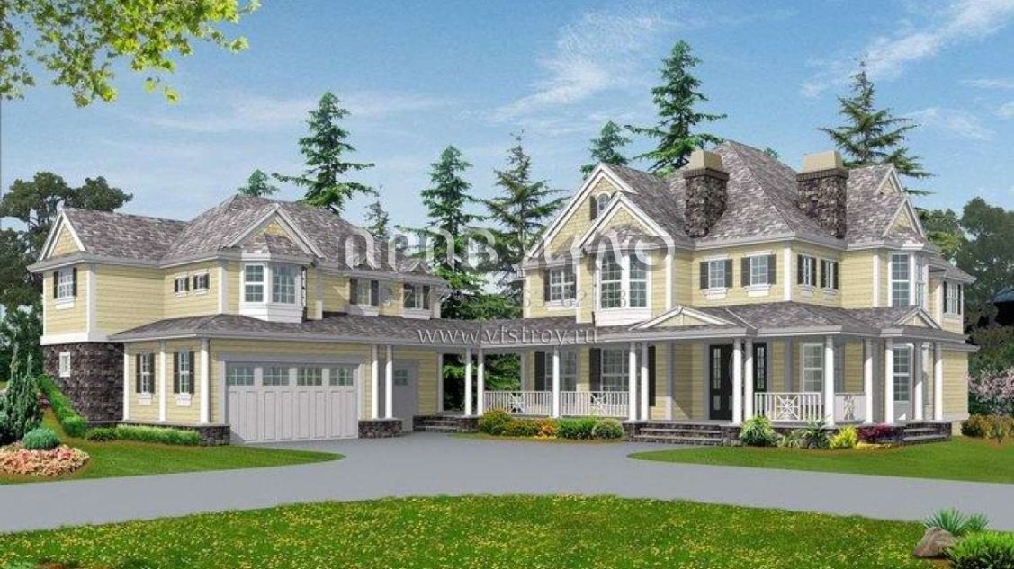Проект двухэтажного дома с гаражом на три и более машин в стиле Ранчо S5-458 (341-00283)