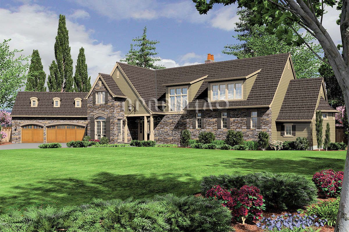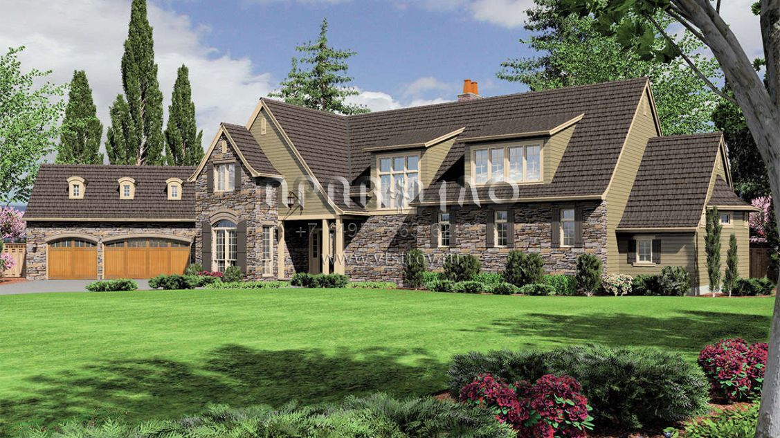 Проект двухэтажного дома с гаражом на три и более машин в английском стиле S5-459 (2559-00605)