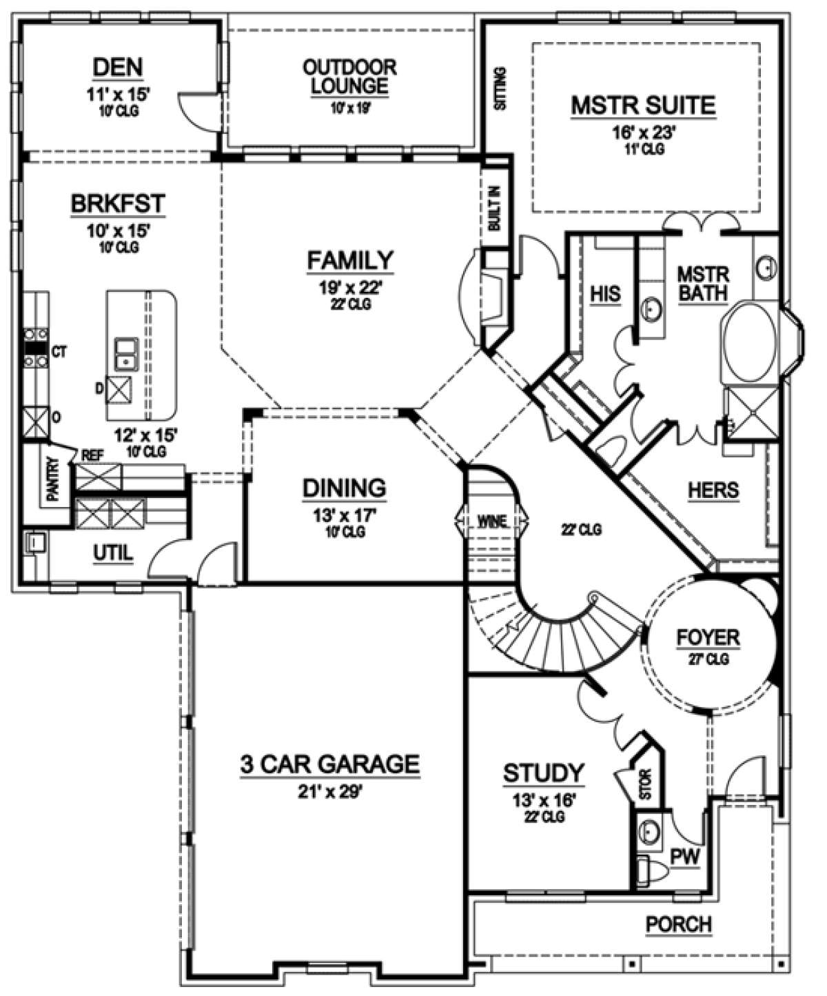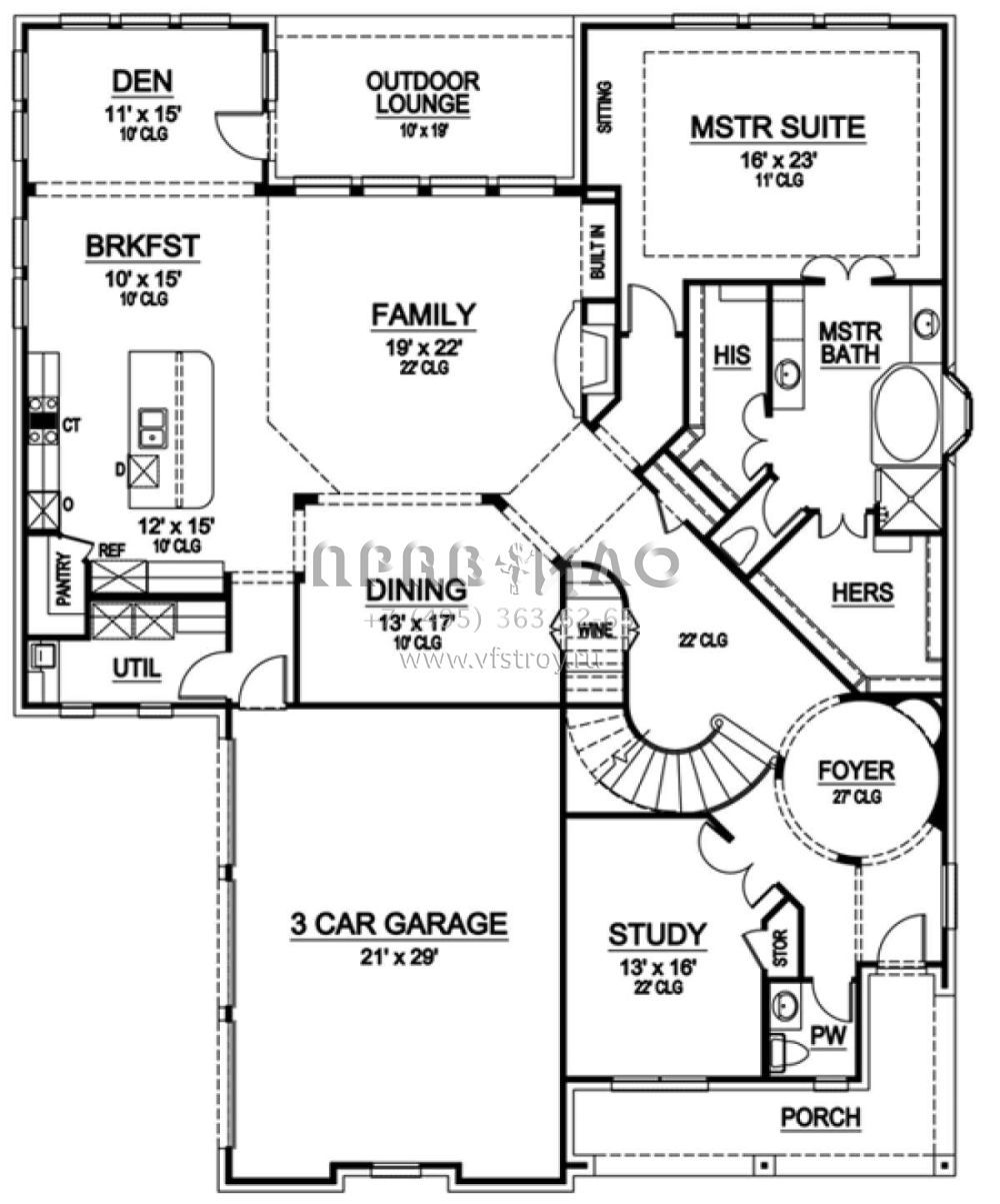 Проект двухэтажного дома с гаражом на три и более машин в стиле Ранчо S5-459 (5445-00088)