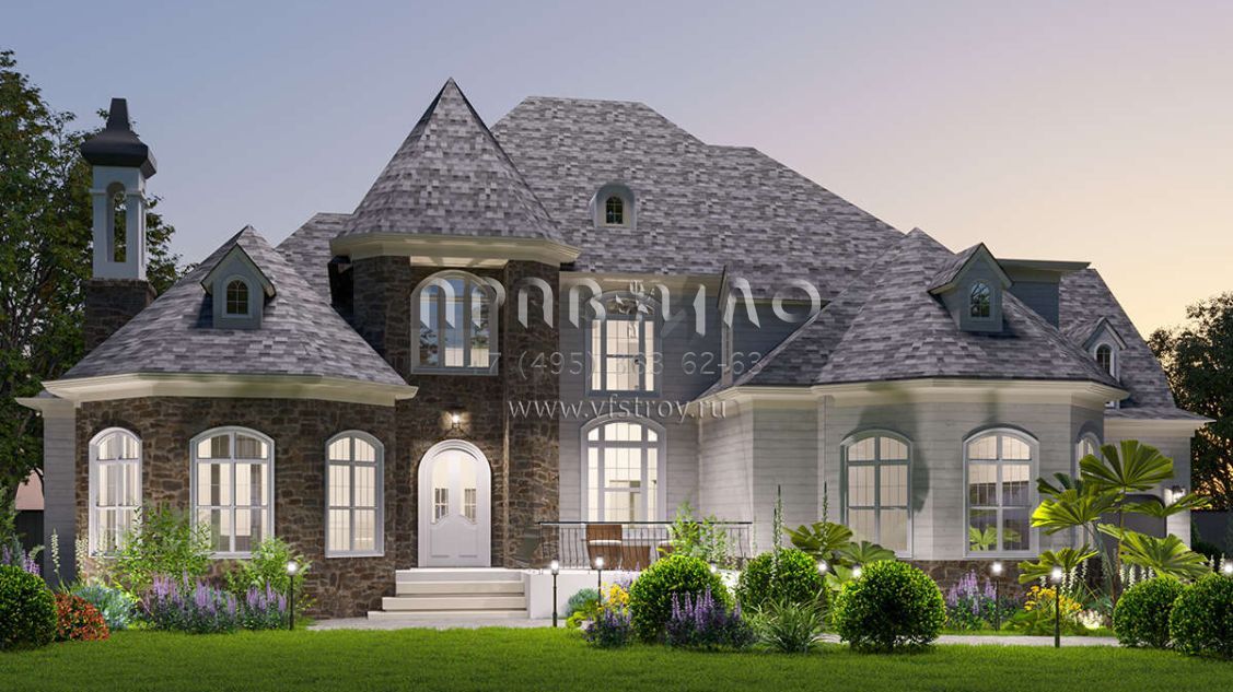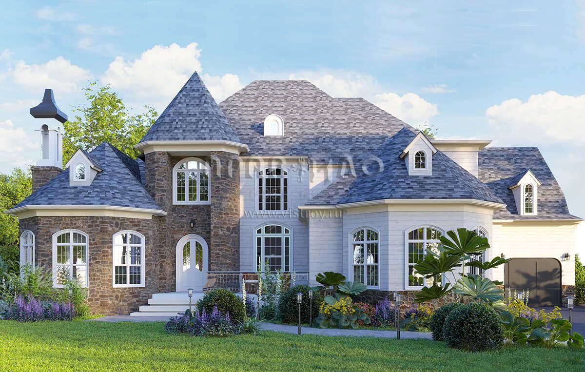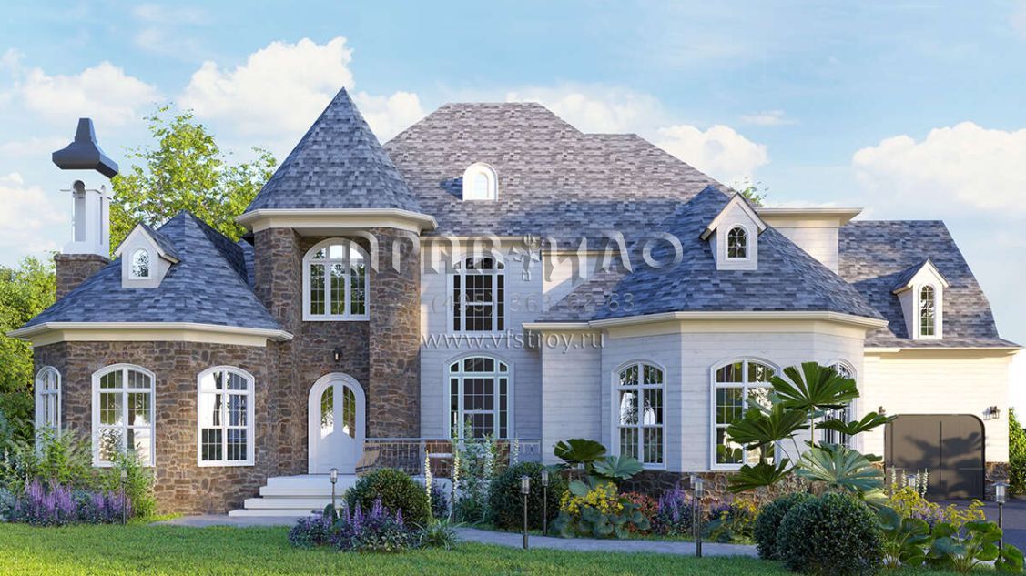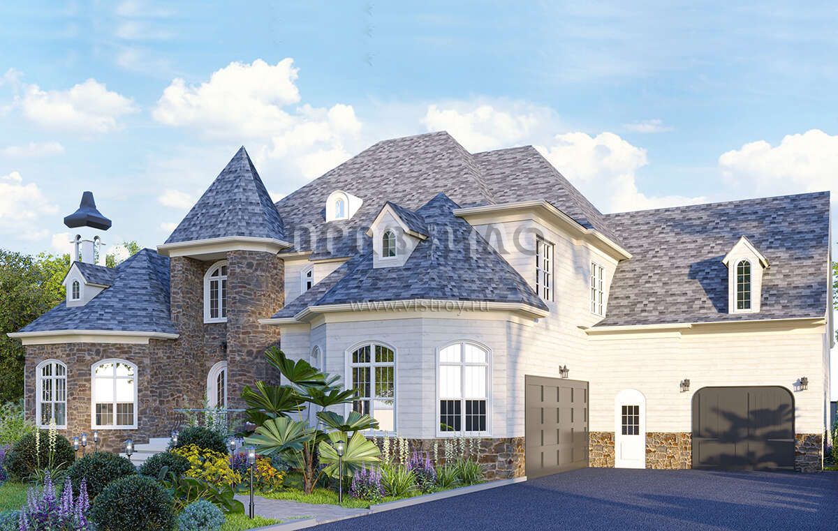 Проект двухэтажного дома с гаражом на три и более машин в английском стиле S5-459 (699-00063)