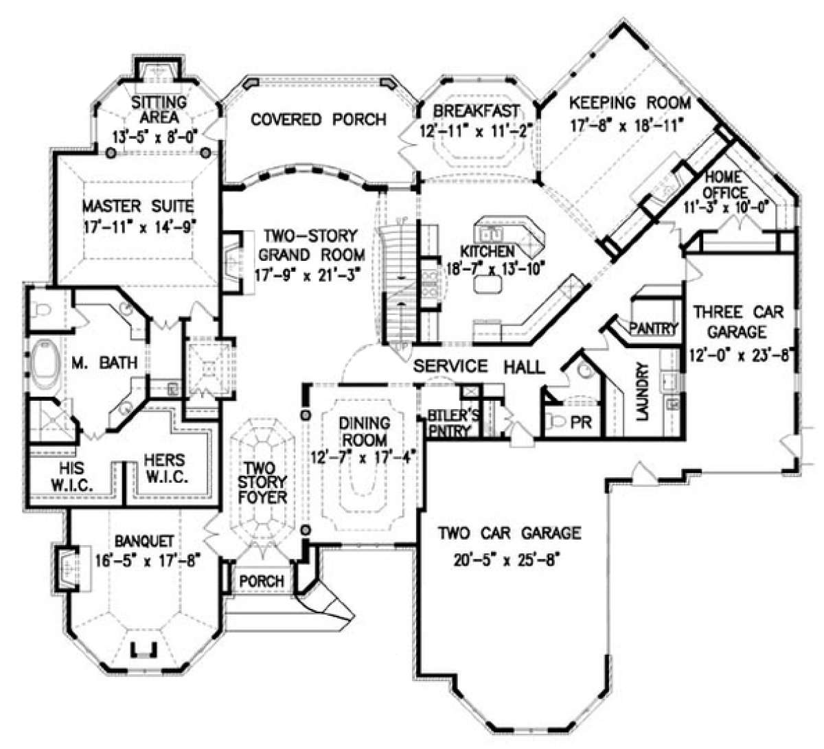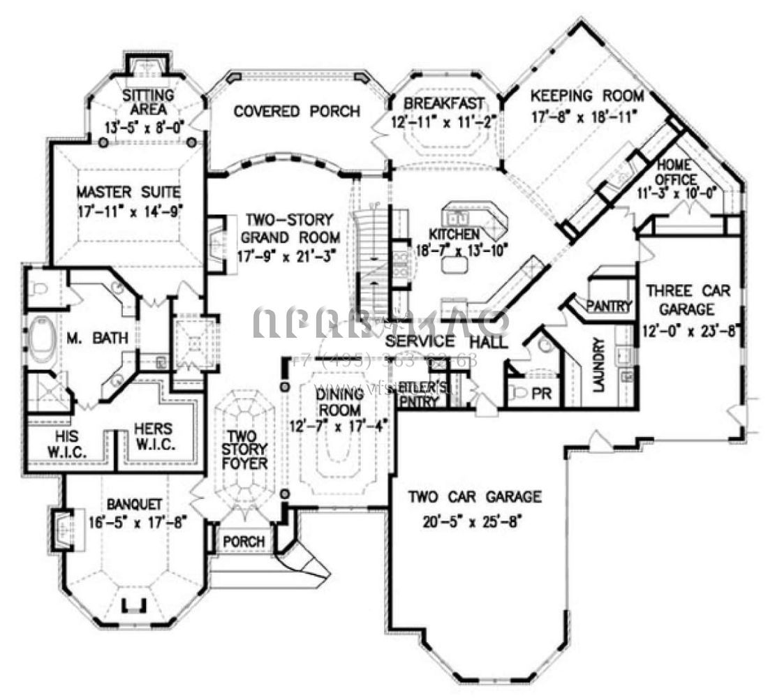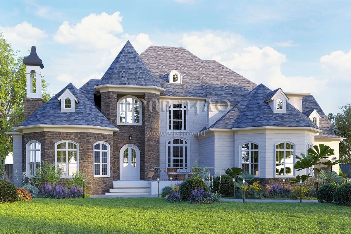 Проект двухэтажного дома с гаражом на три и более машин в английском стиле S5-459 (699-00063)