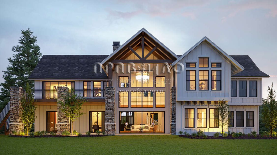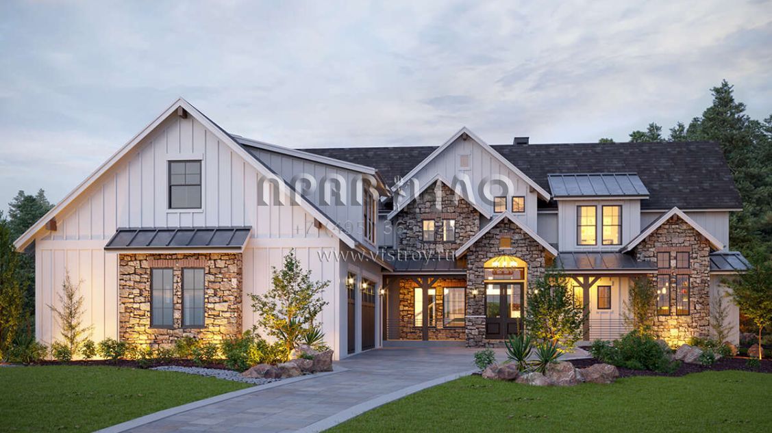 Проект двухэтажного дома с гаражом на три и более машин в американском стиле S5-461 (5631-00149)