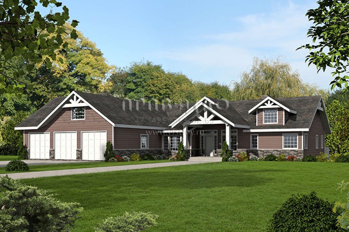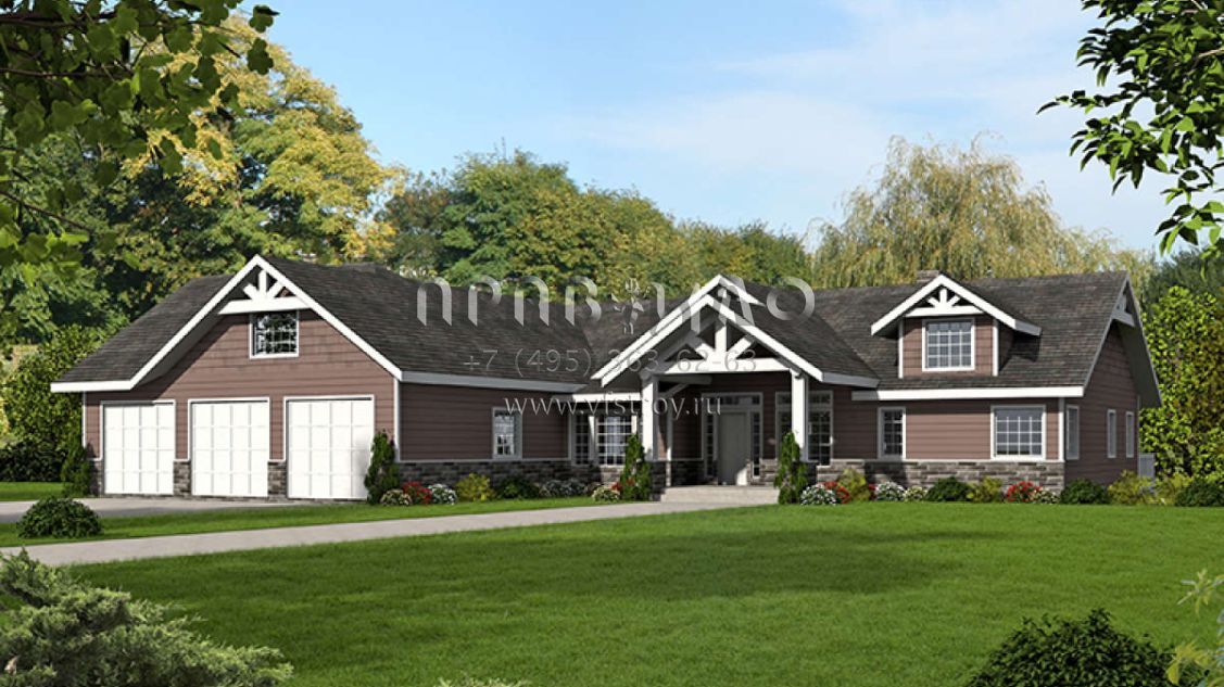 Проект одноэтажного дома с гаражом на три и более машин в стиле Шале S5-463 (039-00577)