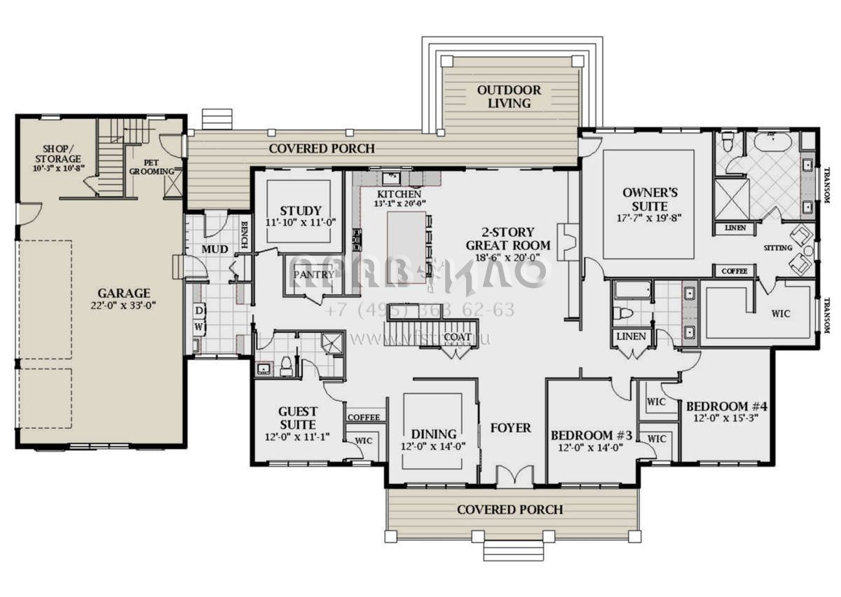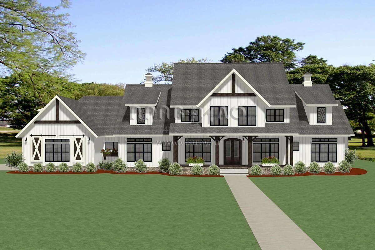 Проект двухэтажного дома с гаражом на три и более машин в современном стиле S5-464 (6849-00089)