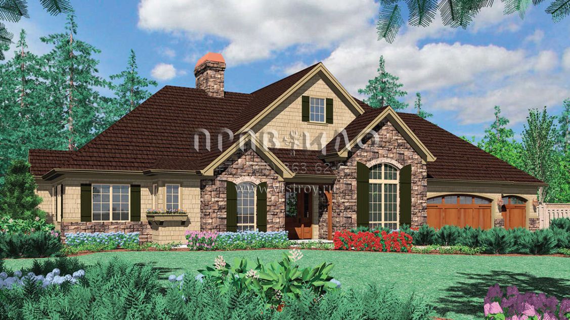 Проект одноэтажного дома с гаражом на три и более машин в американском стиле S5-468 (2559-00181)