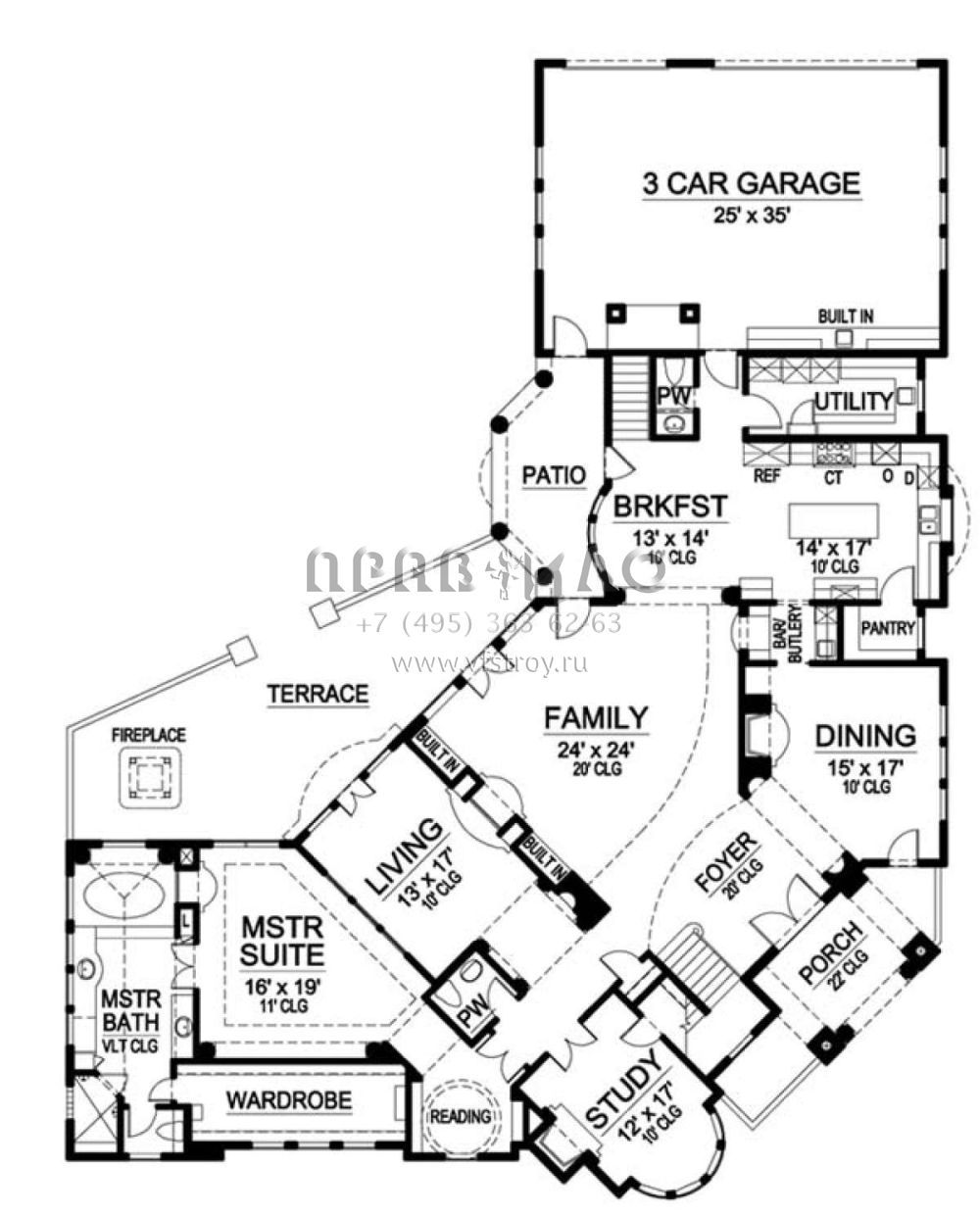 Проект двухэтажного дома с гаражом на три и более машин в современном стиле S5-470 (5445-00153)
