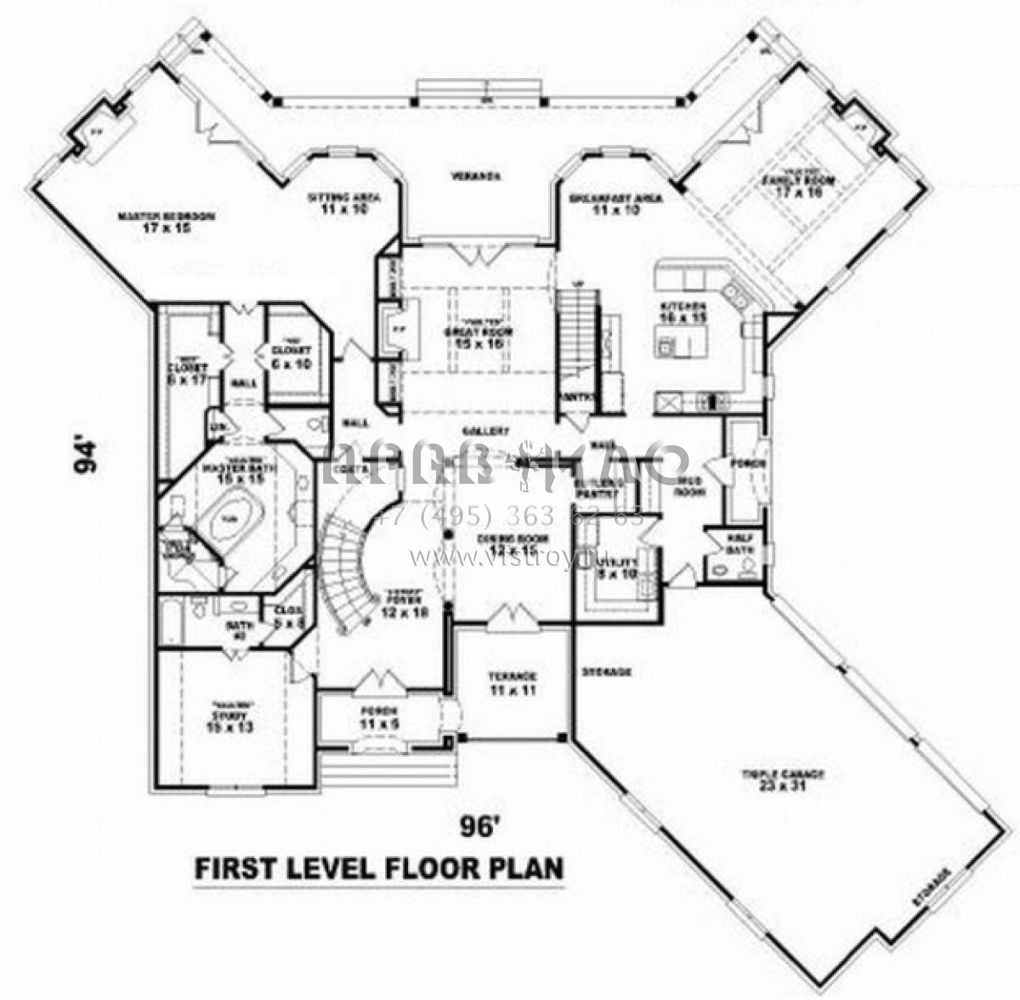 Проект трехэтажного дома с гаражом на три и более машин в английском стиле S5-473 (053-02201)