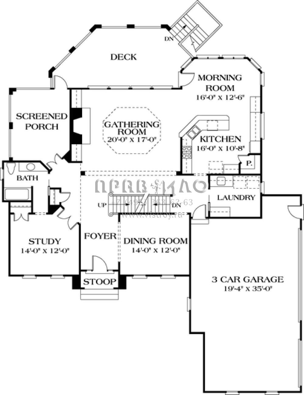 Проект двухэтажного дома с гаражом на три и более машин в стиле Ранчо S5-477 (3323-00385)