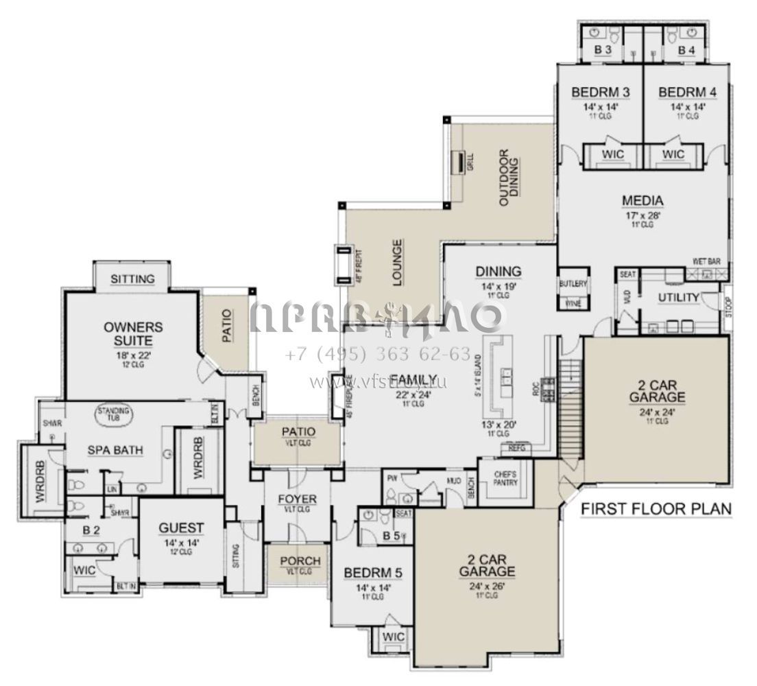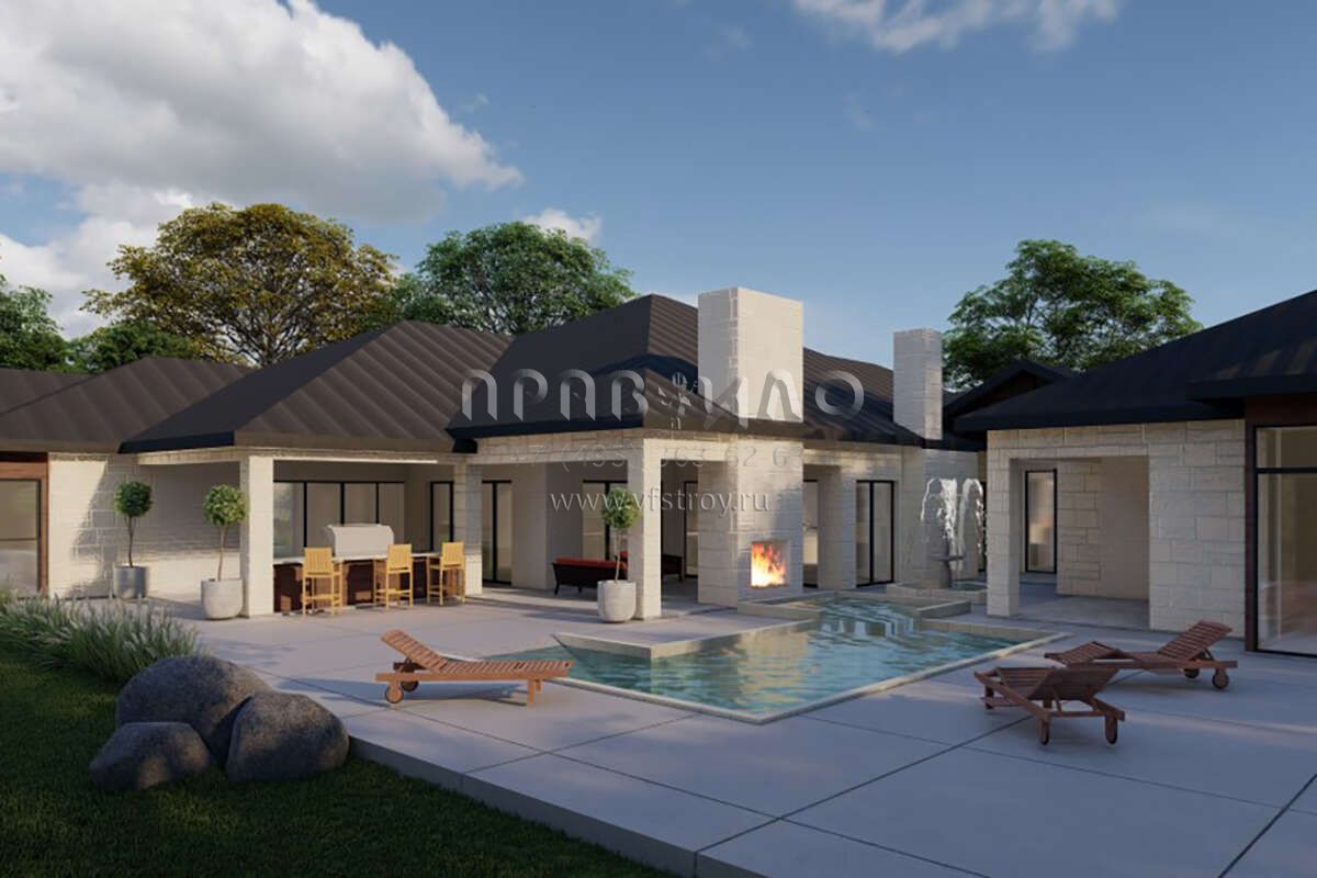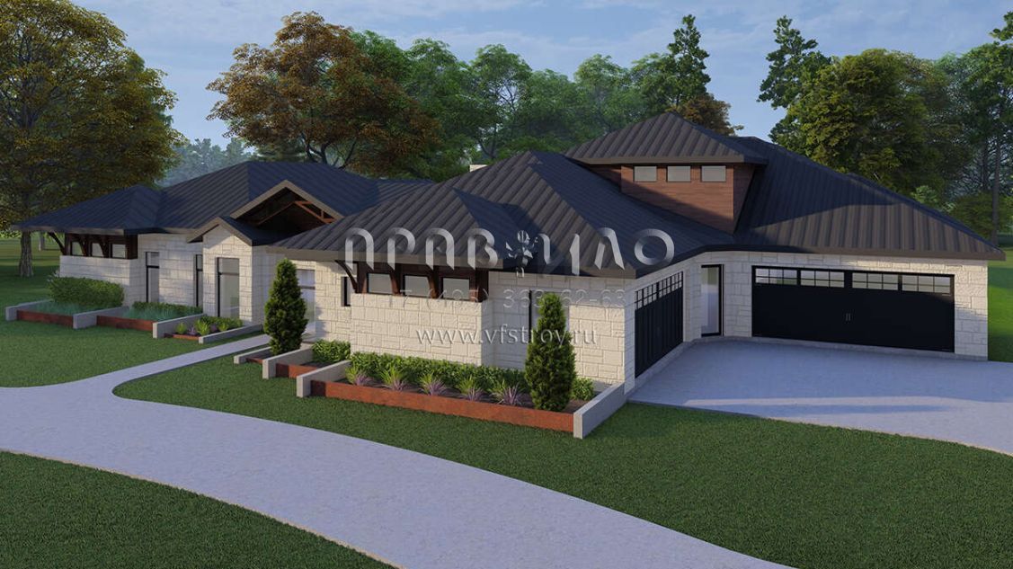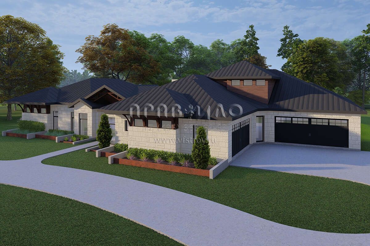 Проект одноэтажного дома с гаражом на три и более машин в современном стиле S5-479 (5445-00481)