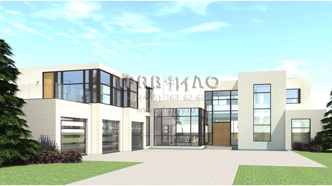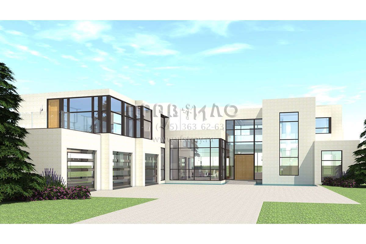 Это проект двухэтажного дома с гаражом на три и более машин жилой площадью 480 кв.м. Длина дома 31.7 м, ширина 28.3 м, высота 8.8 м. В доме пять спален и пять санузлов.