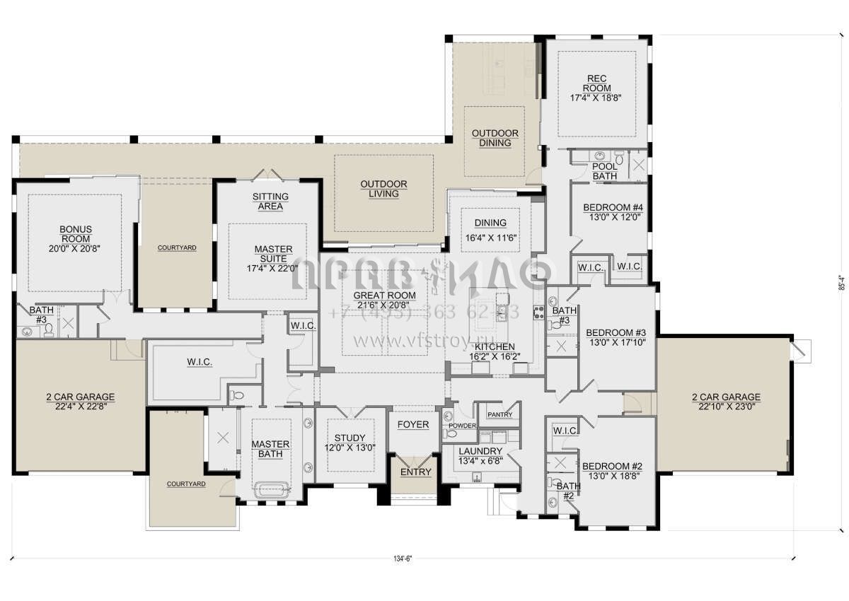 Проект одноэтажного дома с гаражом на три и более машин в современном стиле S5-483 (5565-00152)