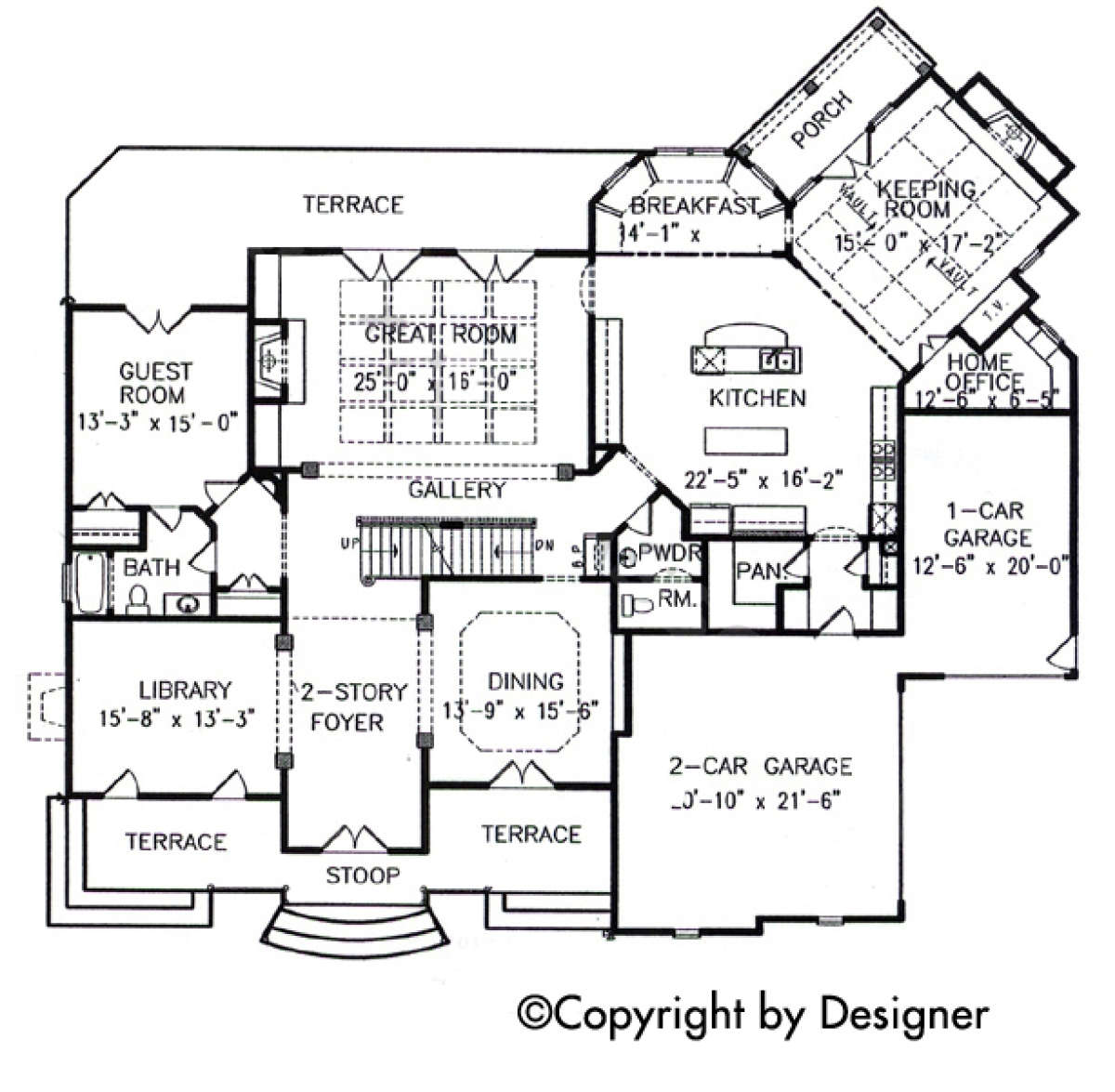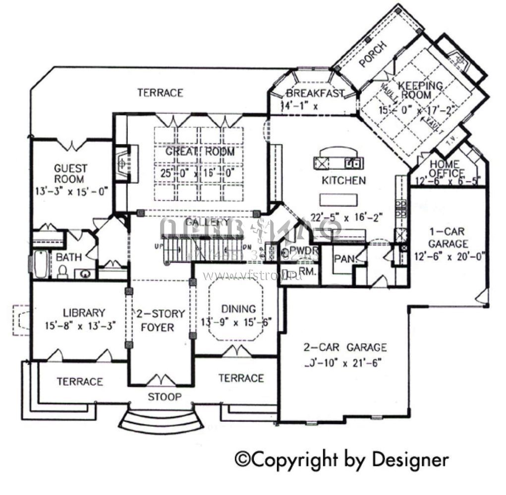Проект двухэтажного особняка с гаражом на три машины в замковом стиле S5-483 (699-00080)