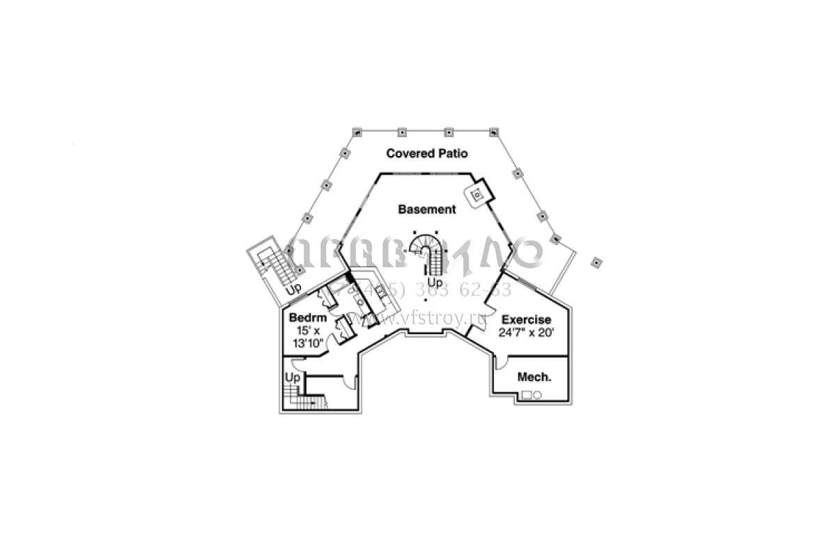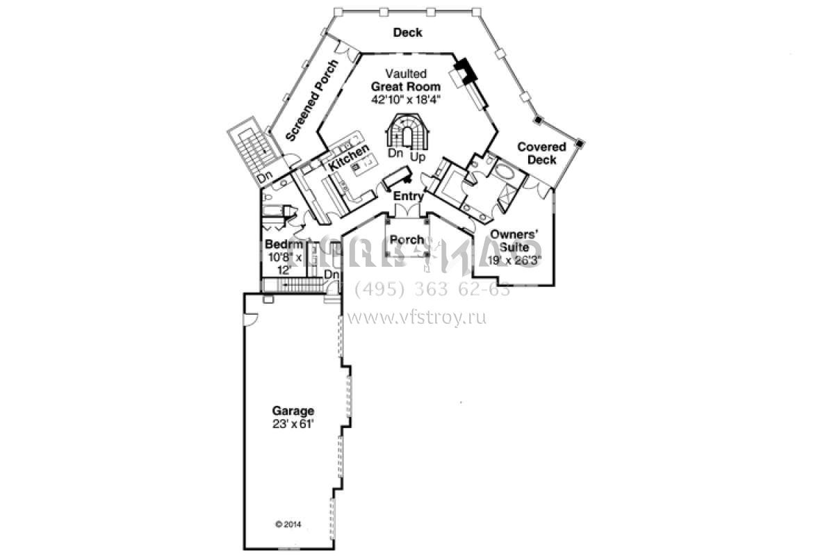 S5-488 (035-00686) Это иностранный проект, для которого требуется адаптация под нормы, действующие в Российской Федерации. Вы видите проект дома в английском стиле. В этом доме сочетаются черты сельской постройки и аскетичность лофта. Внутри жильцы смогут проводить время с максимальным комфортом. Обратим внимание, что сейчас на планировках все размеры представлены в футах. Для перевода в метры вам необходимо значение в футах умножить на 0,3048.