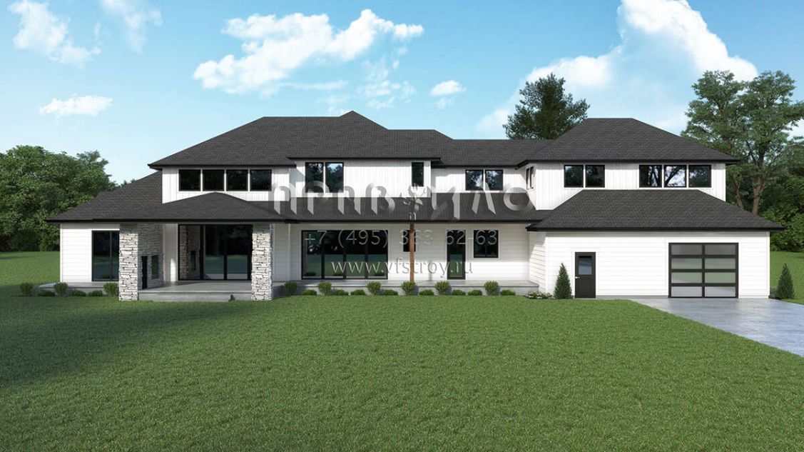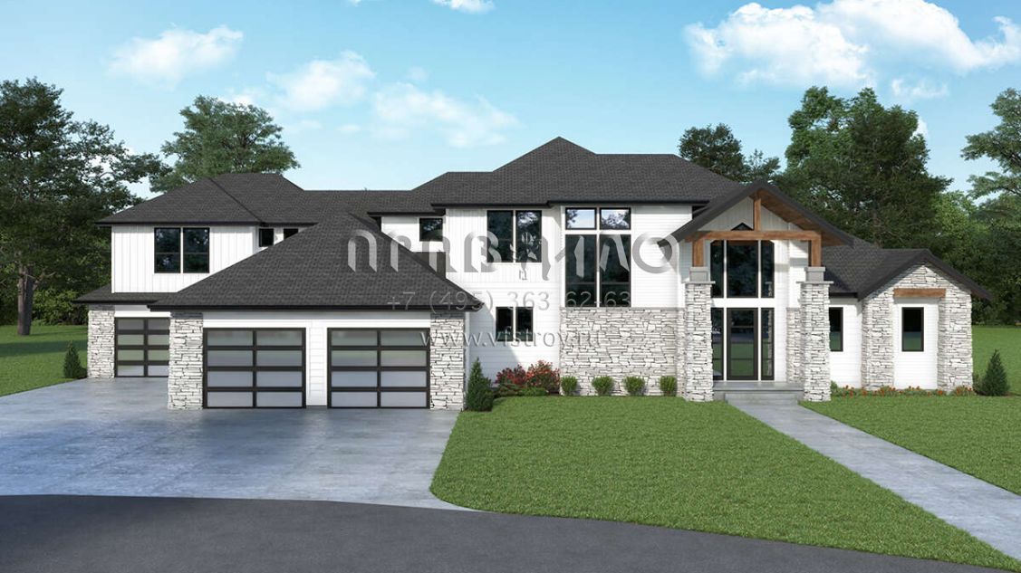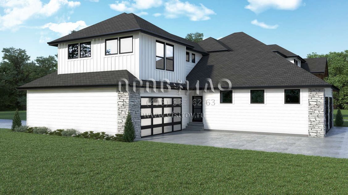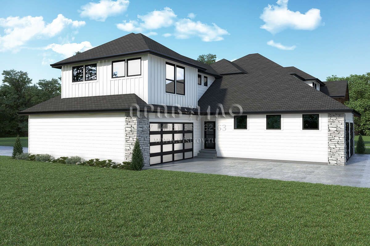 Проект двухэтажного дома с гаражом на три и более машин в современном стиле S5-490 (2464-00066)