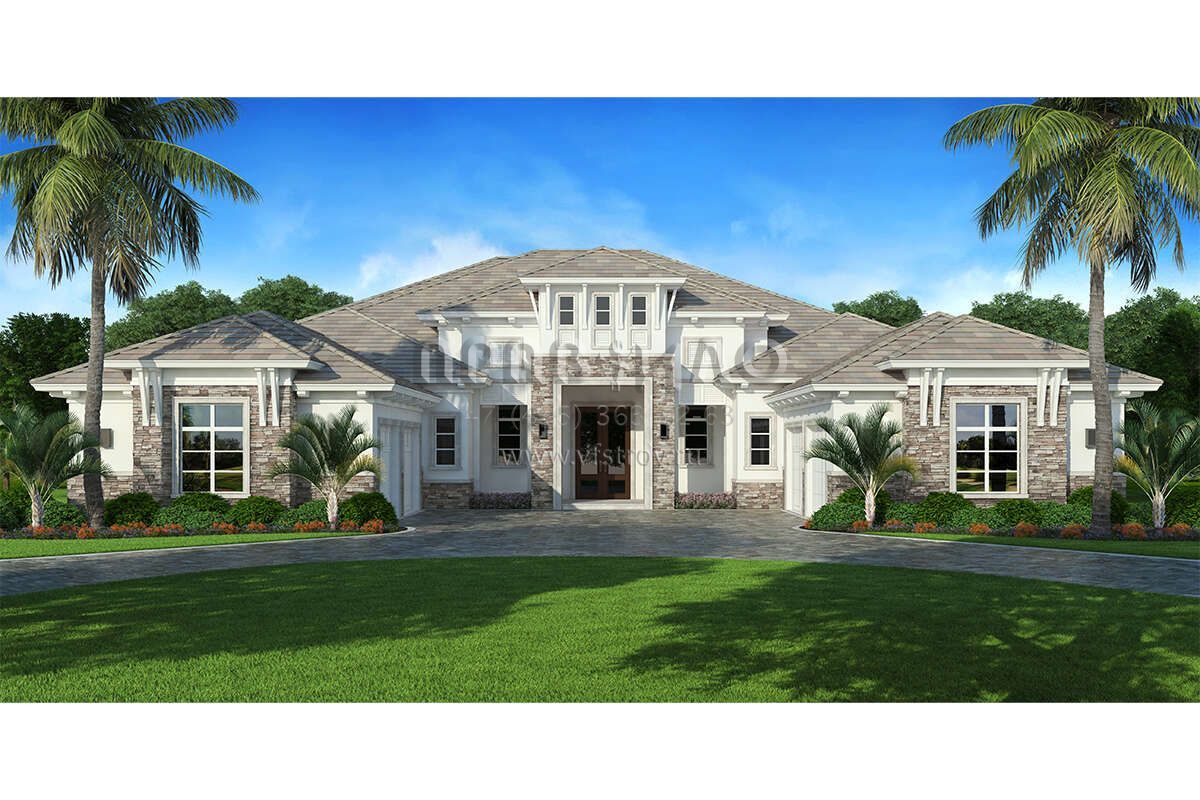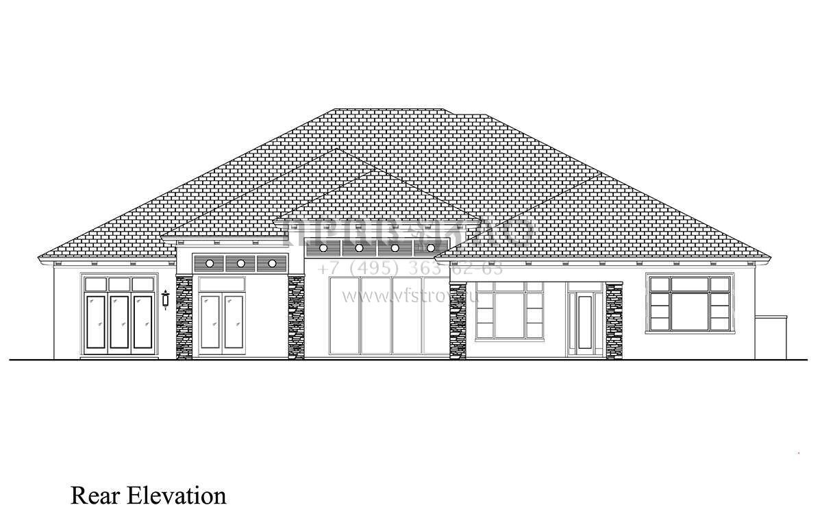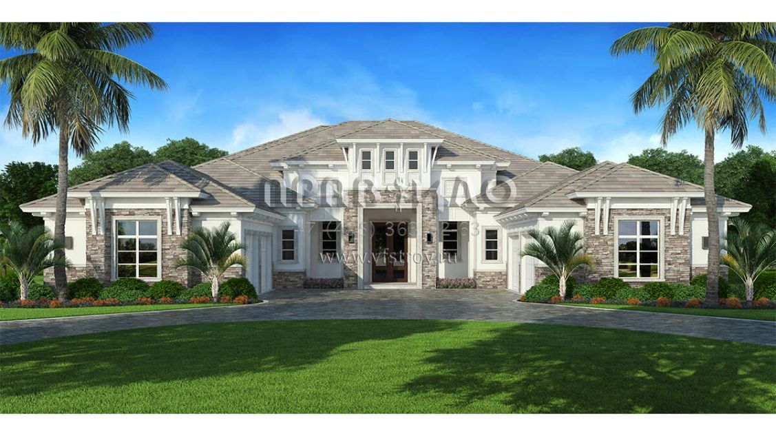 Проект одноэтажного дома с гаражом на три и более машин в прибрежном стиле S5-491 (207-00109)