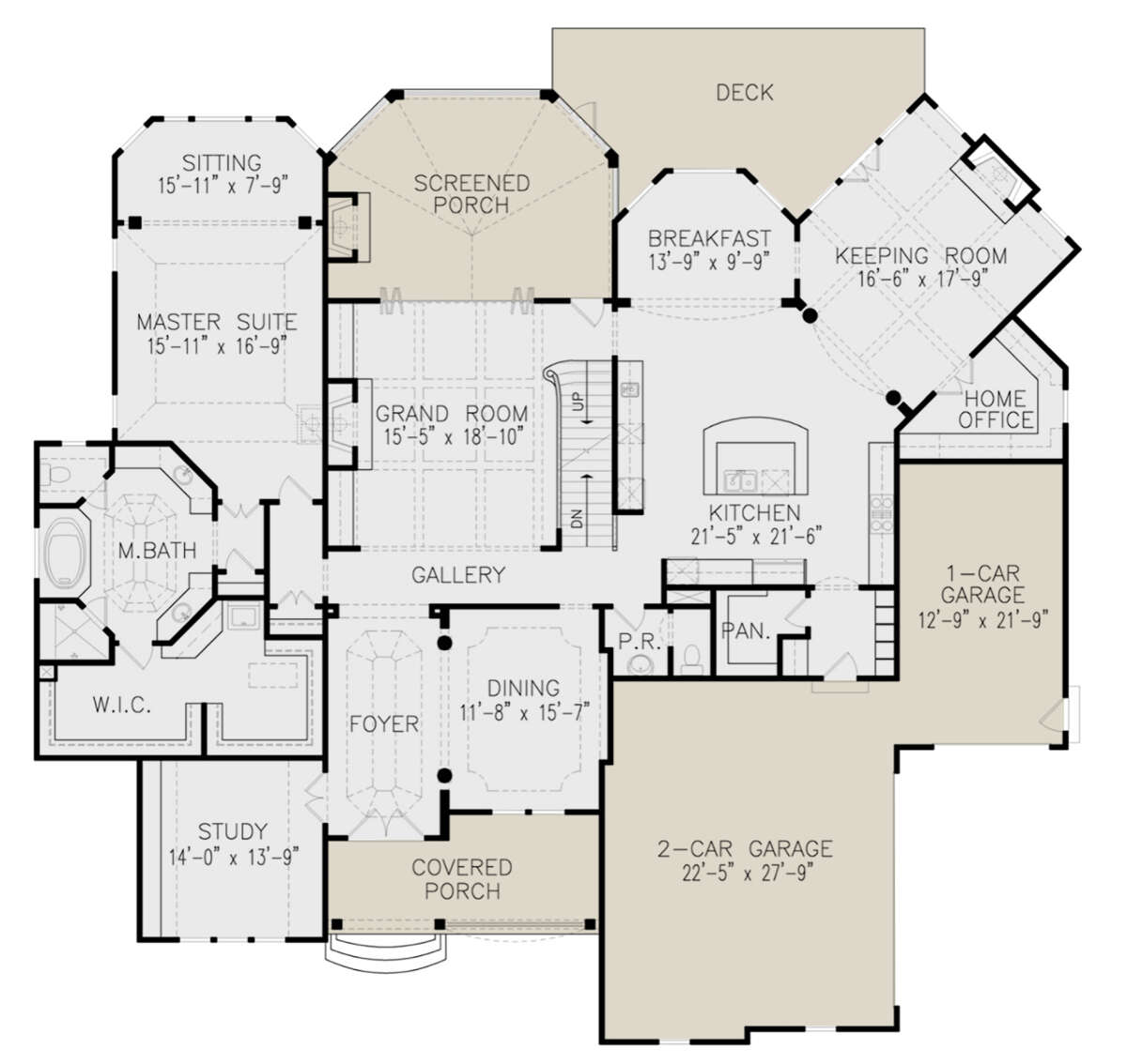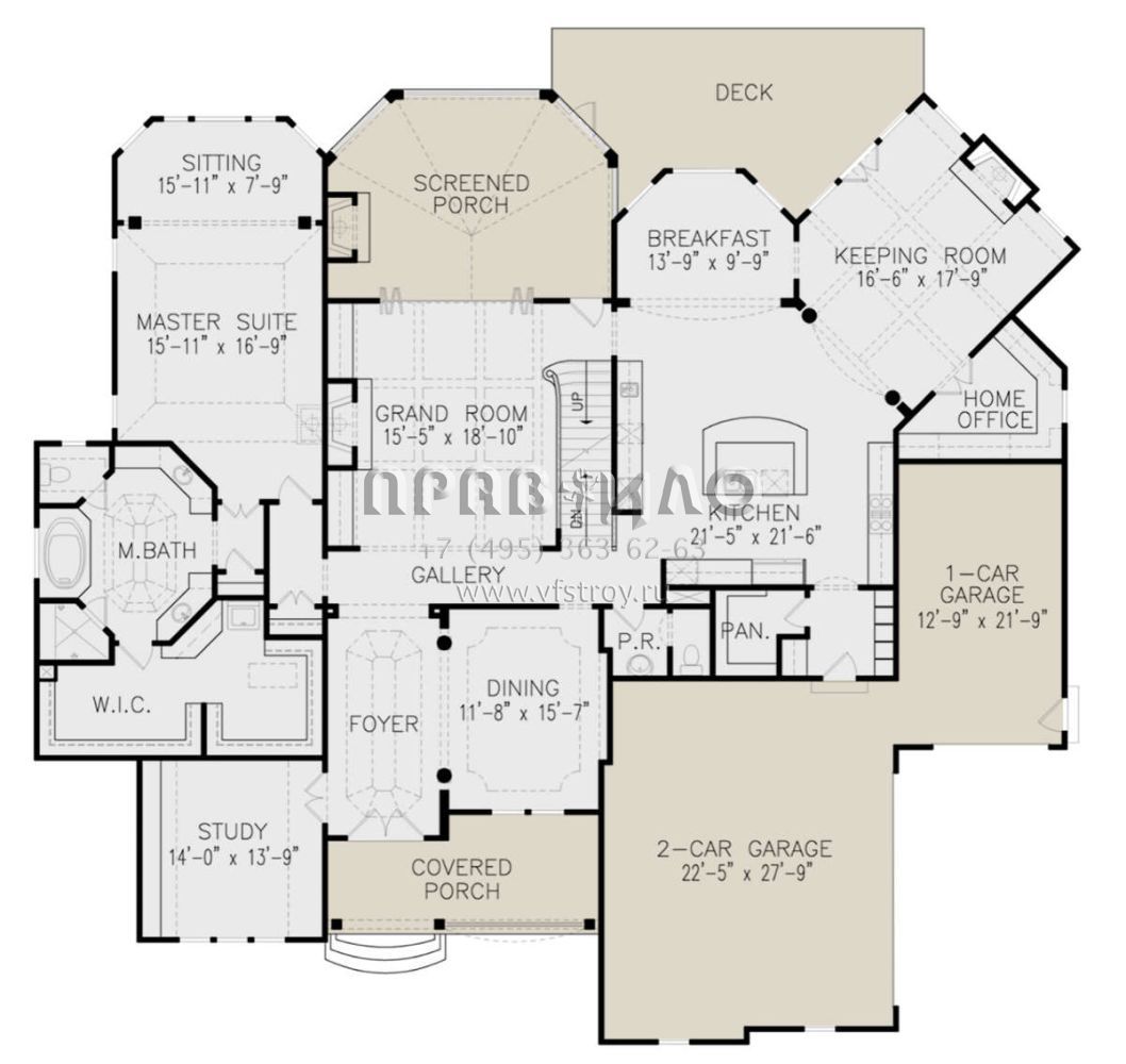 Проект двухэтажного дома с гаражом на три и более машин в стиле Ранчо S5-492 (699-00325)