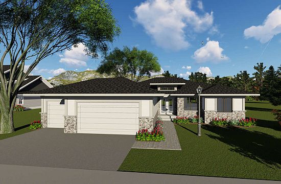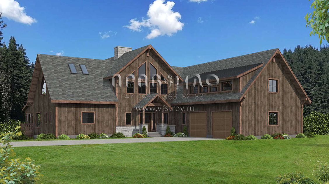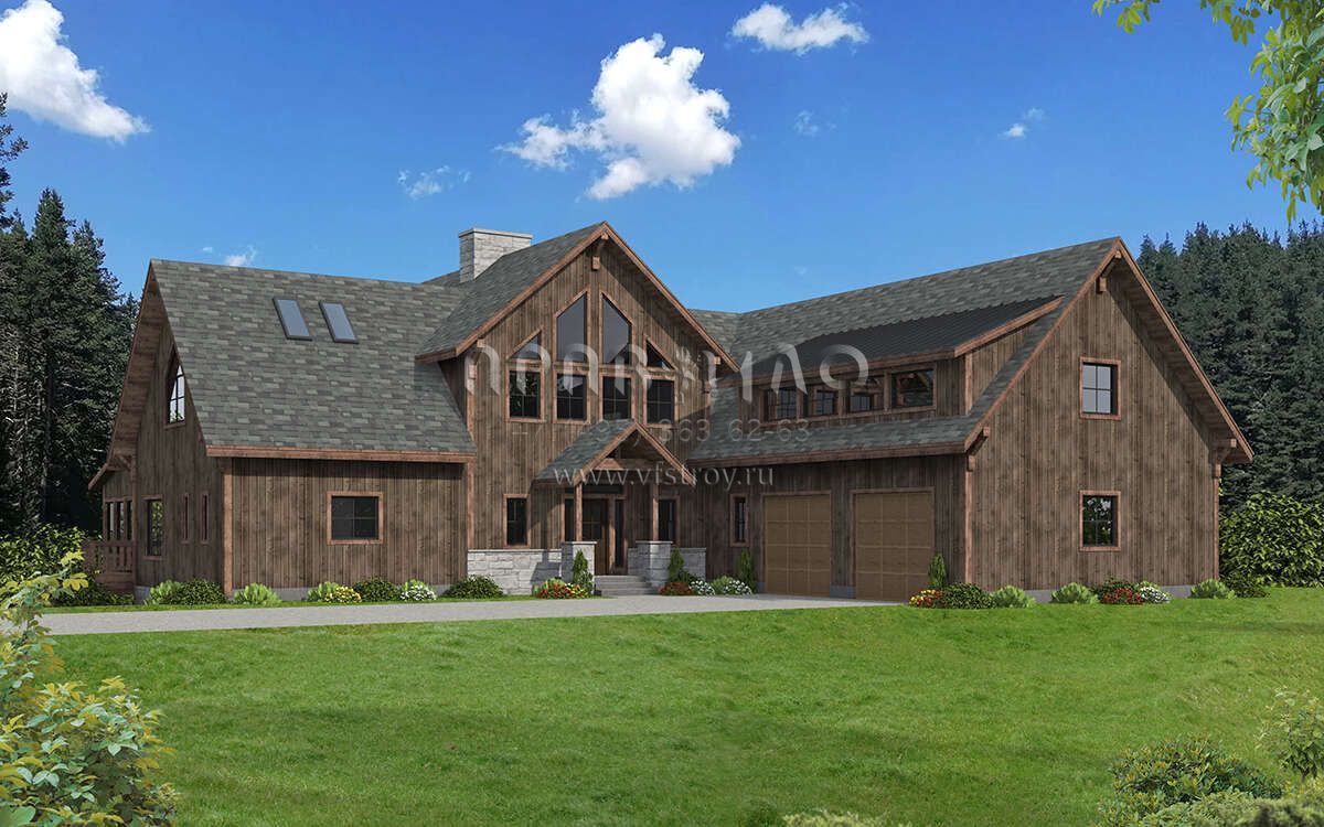 Проект двухэтажного дома с гаражом на две машины в стиле Ранчо S5-493 (039-00735)