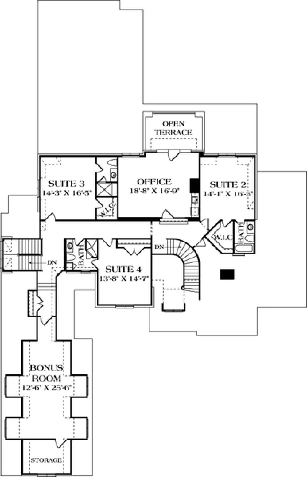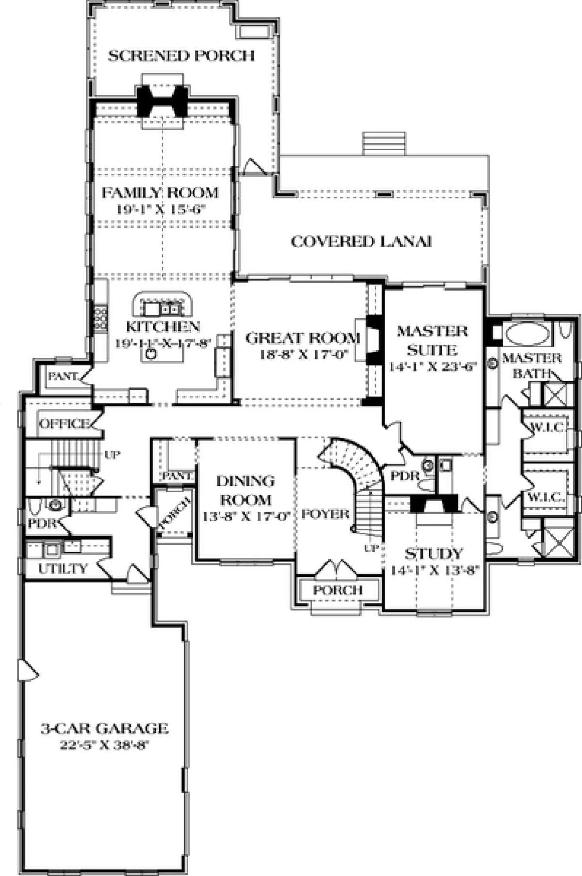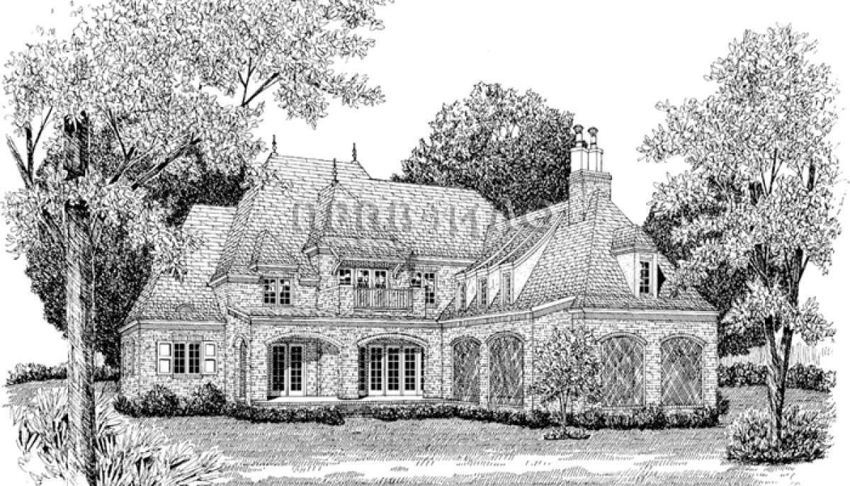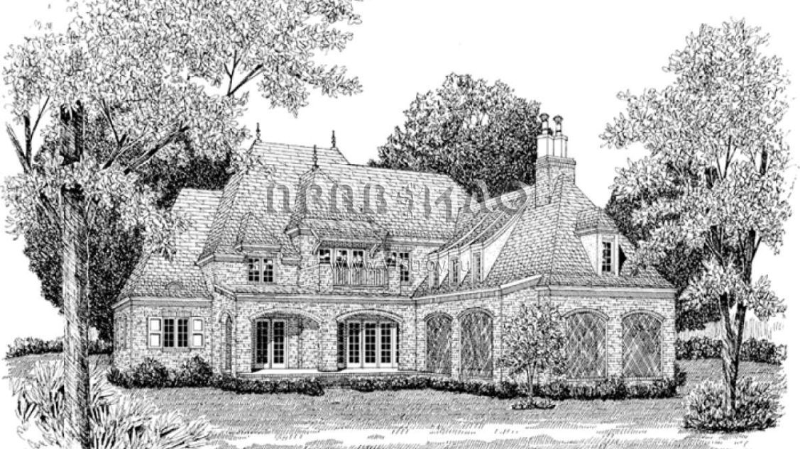 Это проект двухэтажного дома с гаражом на три и более машин жилой площадью 496 кв.м. Длина дома 38.1 м, ширина 23.8 м, высота 0 м. В доме четыре спальни и два санузла.