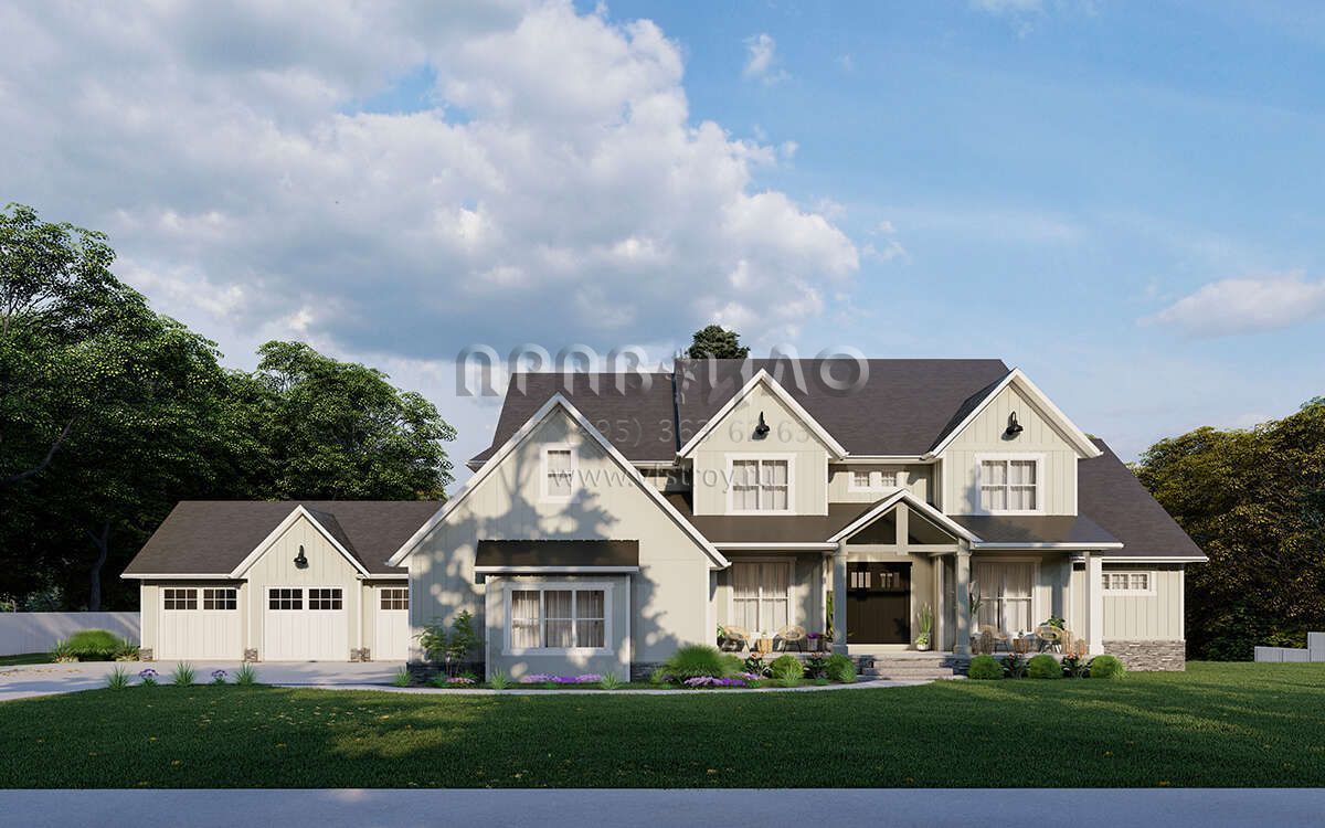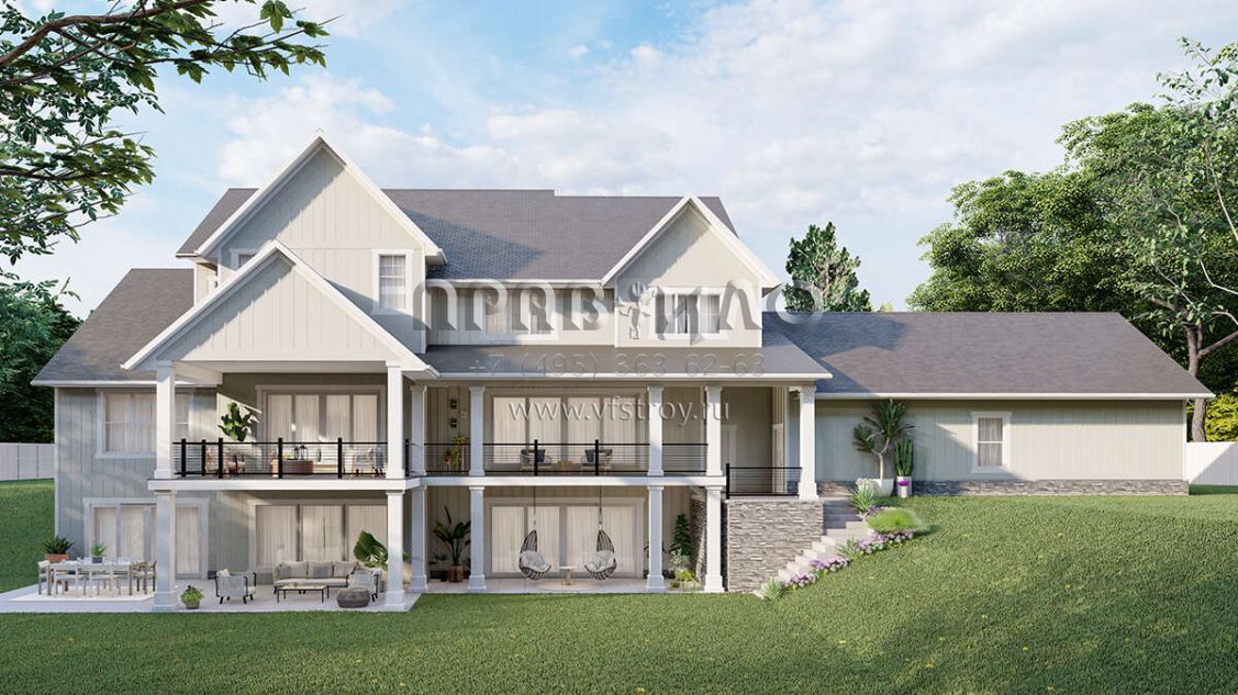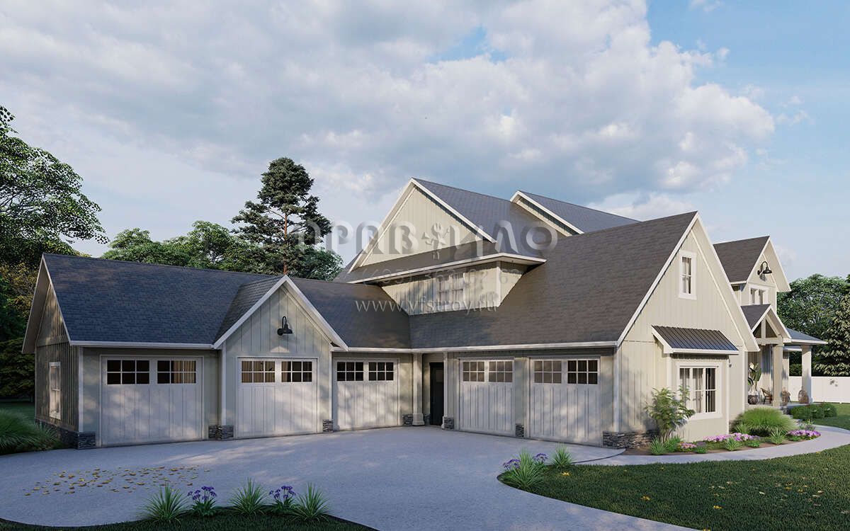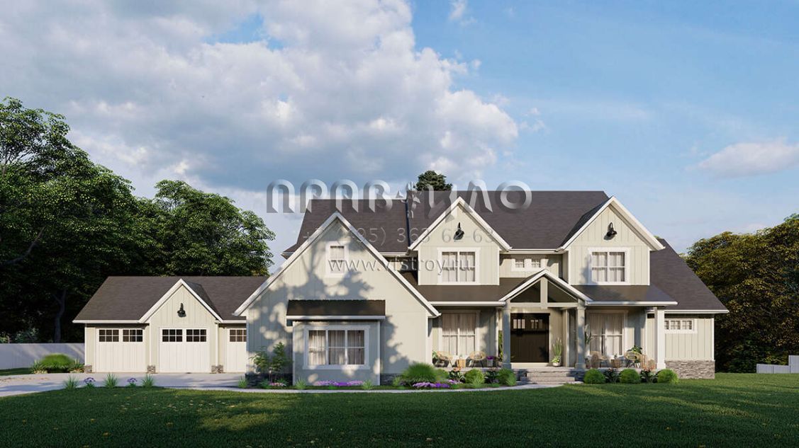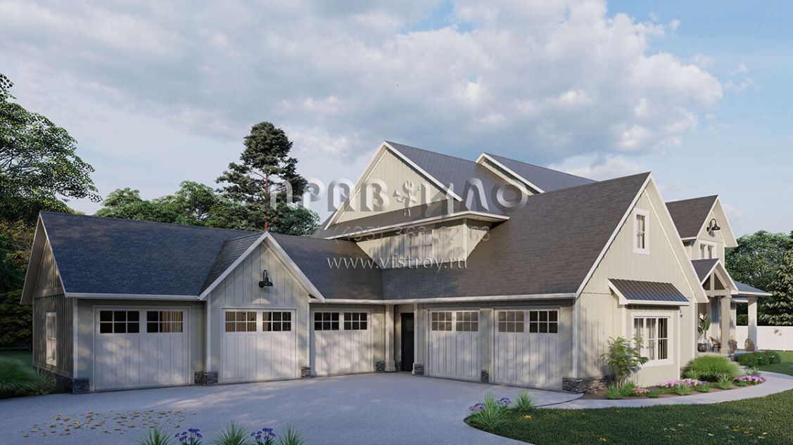 Проект двухэтажного дома с гаражом на три и более машин в американском стиле S5-500 (5032-00243)