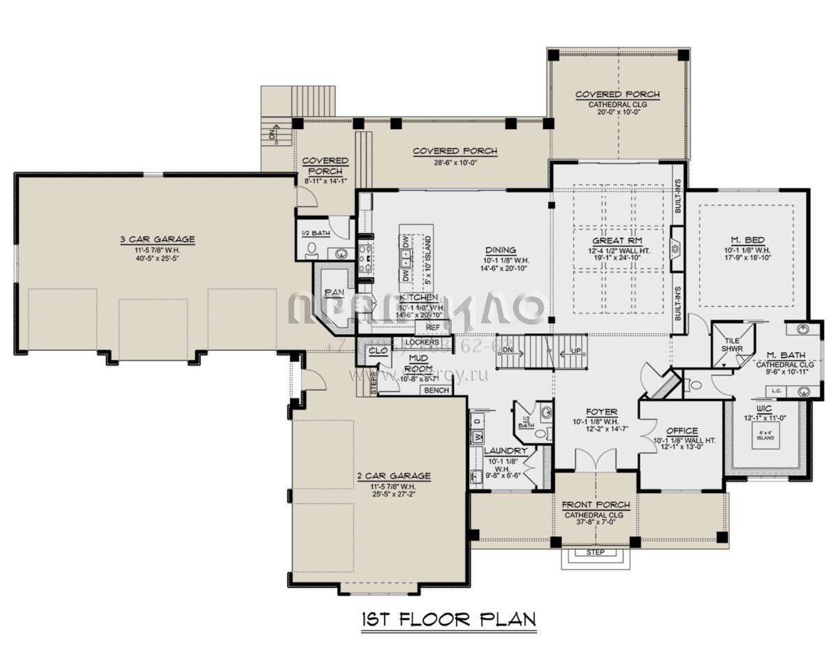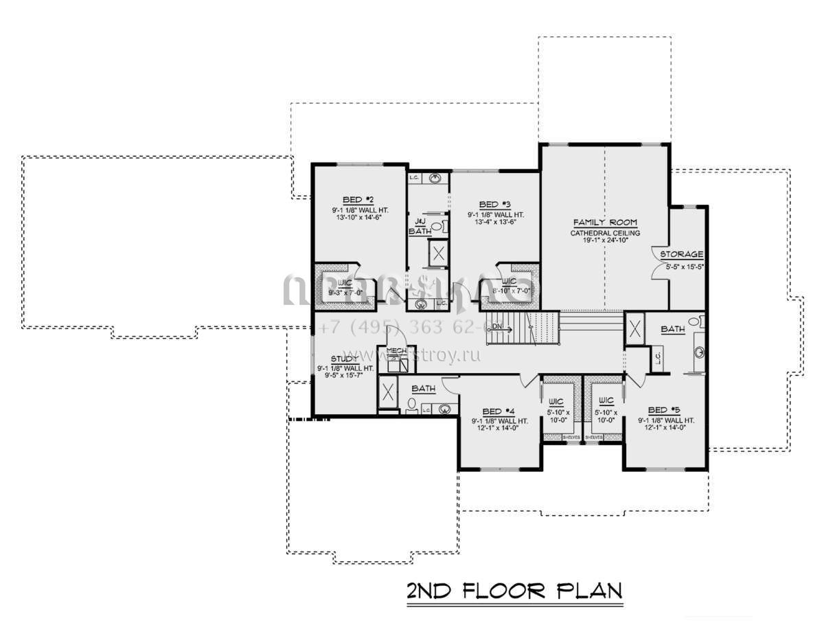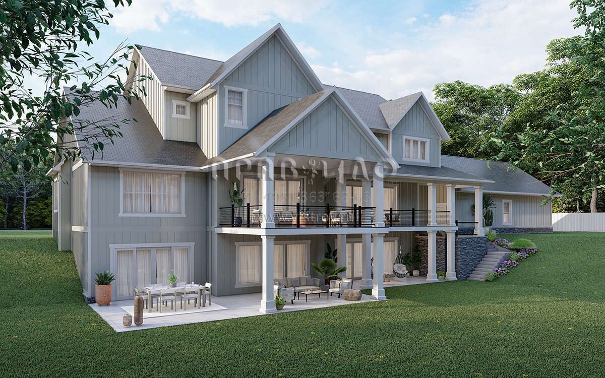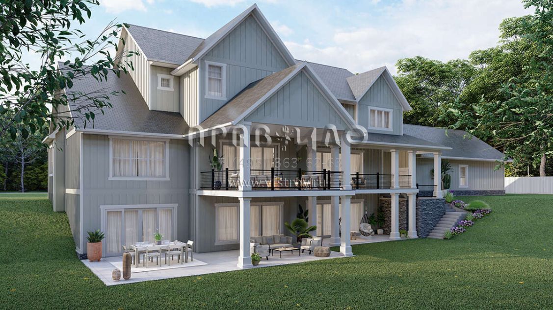 Проект двухэтажного дома с гаражом на три и более машин в американском стиле S5-500 (5032-00243)