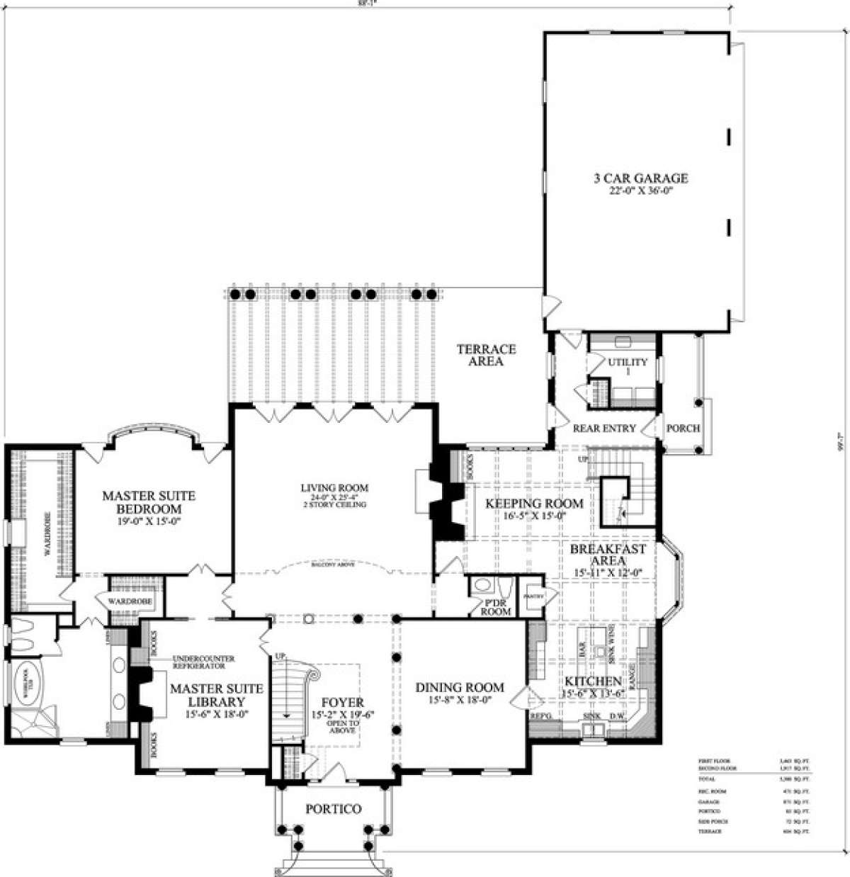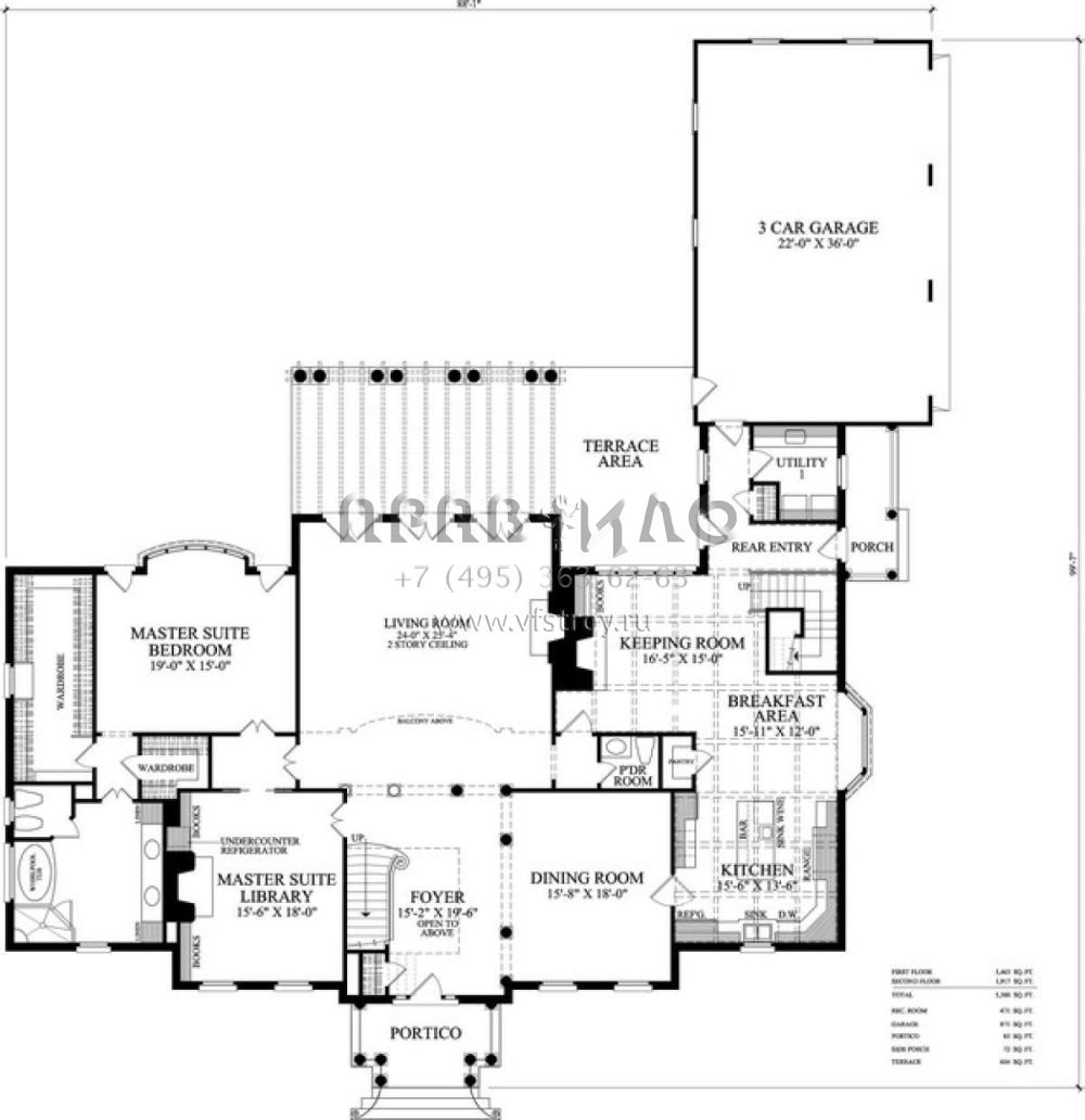Проект двухэтажного дома с гаражом на три и более машин в стиле Ранчо S5-500 (7922-00054)
