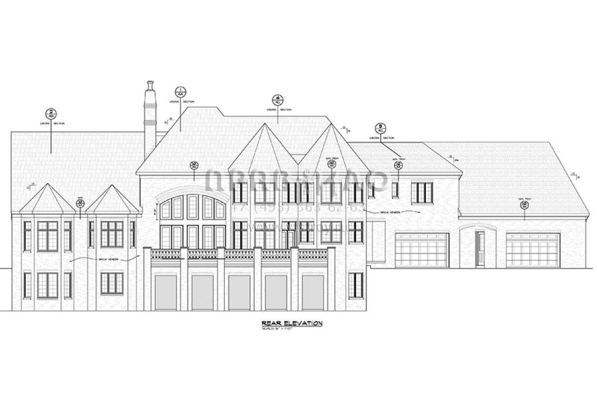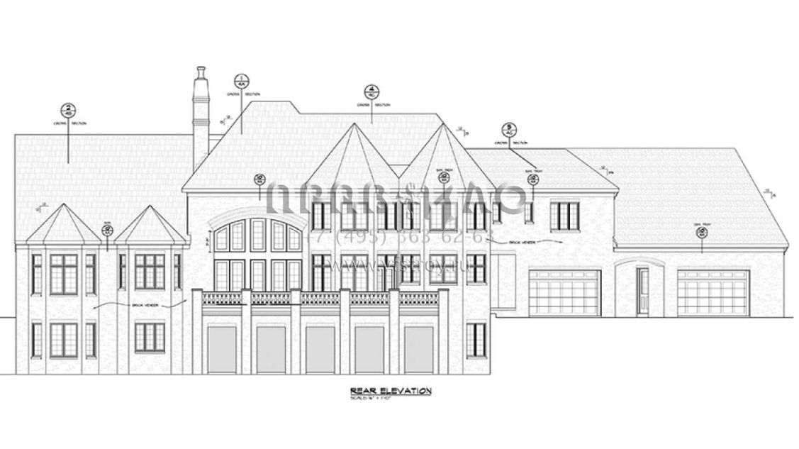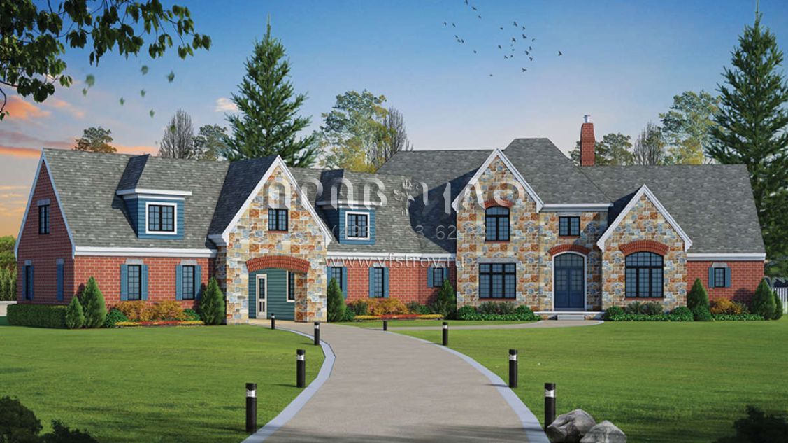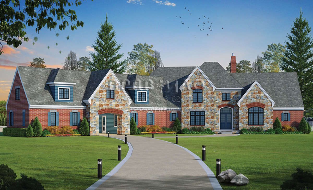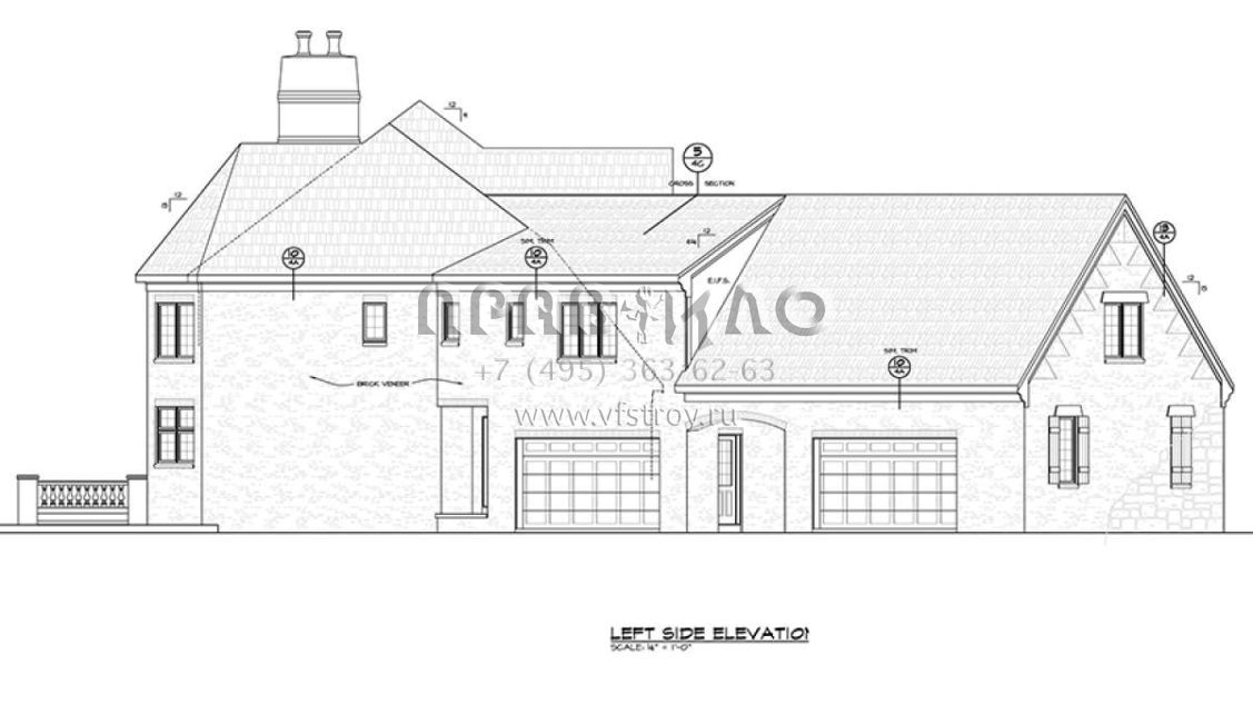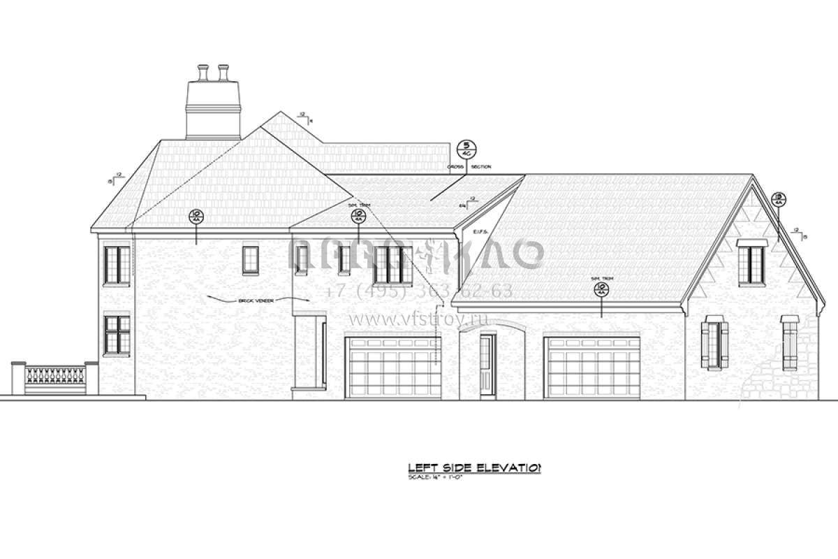 Проект двухэтажного дома с гаражом на три и более машин в английском стиле S5-507 (402-01471)